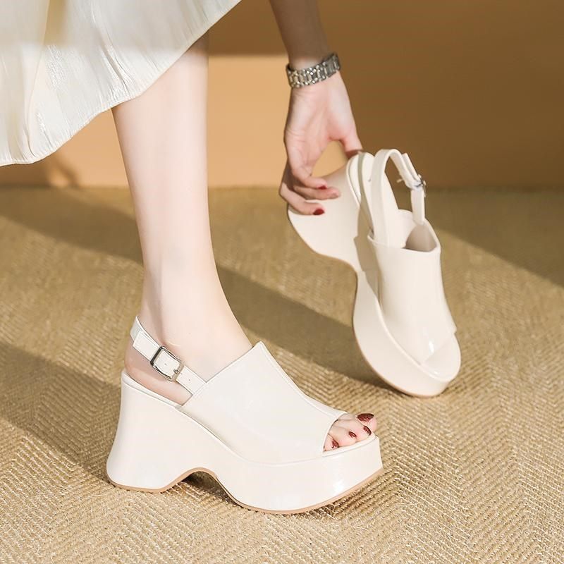 2025年夏季新款防水台松糕底厚底鱼嘴凉鞋,以时尚与舒适兼具的设计引领夏日潮流。采用经典黑色调,百搭不挑风格,轻松驾驭休闲、通勤或度假造型。一字扣带设计简约利落,稳固贴合脚面,提升穿着安全感。鱼嘴开口巧妙露出脚趾,增添一丝俏皮与透气感。加厚松糕底搭配防水台,有效增高显瘦,同时缓震防滑,久走不累。优质材质打造,耐磨耐穿,兼顾美观与实用性。无论是搭配短裙、牛仔裤还是连衣裙,都能轻松打造高挑时髦的夏日look,是2025年夏季不可或缺的时尚单品。