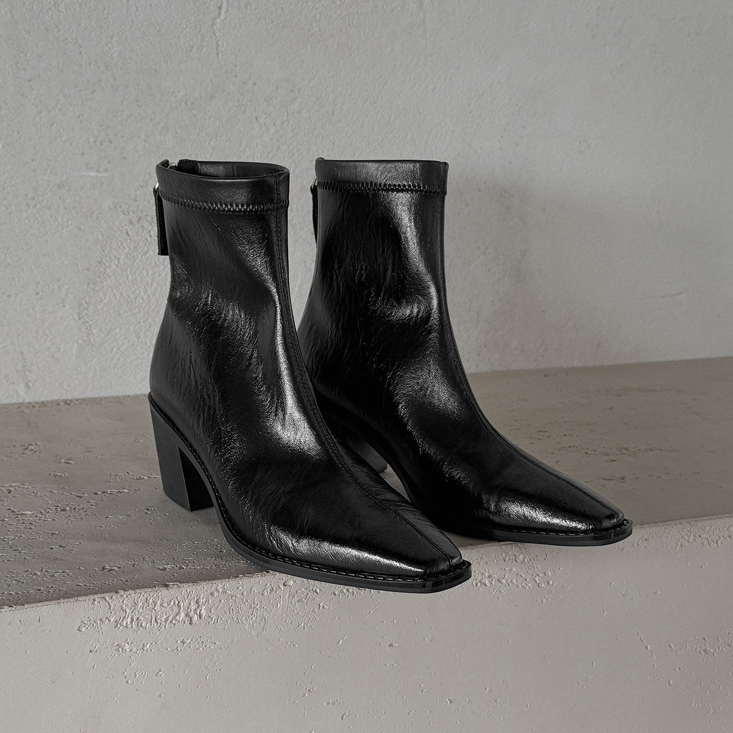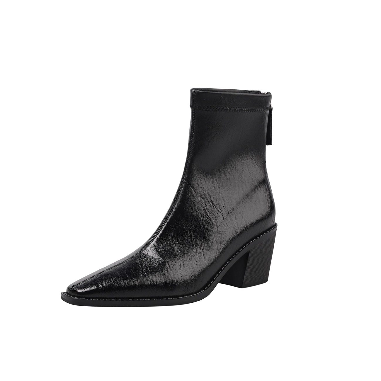 淘宝静音跟尖头气质小个子高跟短靴女秋冬加绒粗跟百搭软皮方头瘦瘦靴