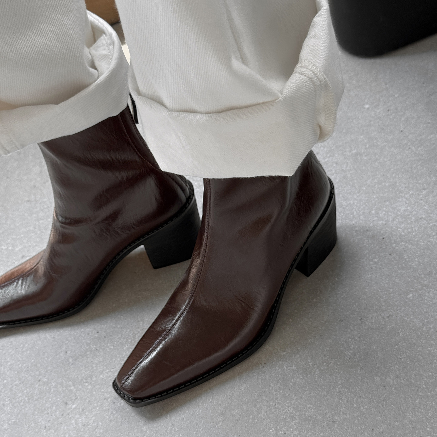 大东切尔西女靴2026秋冬新款粗跟高跟法式小裸靴白色靴子加绒短靴