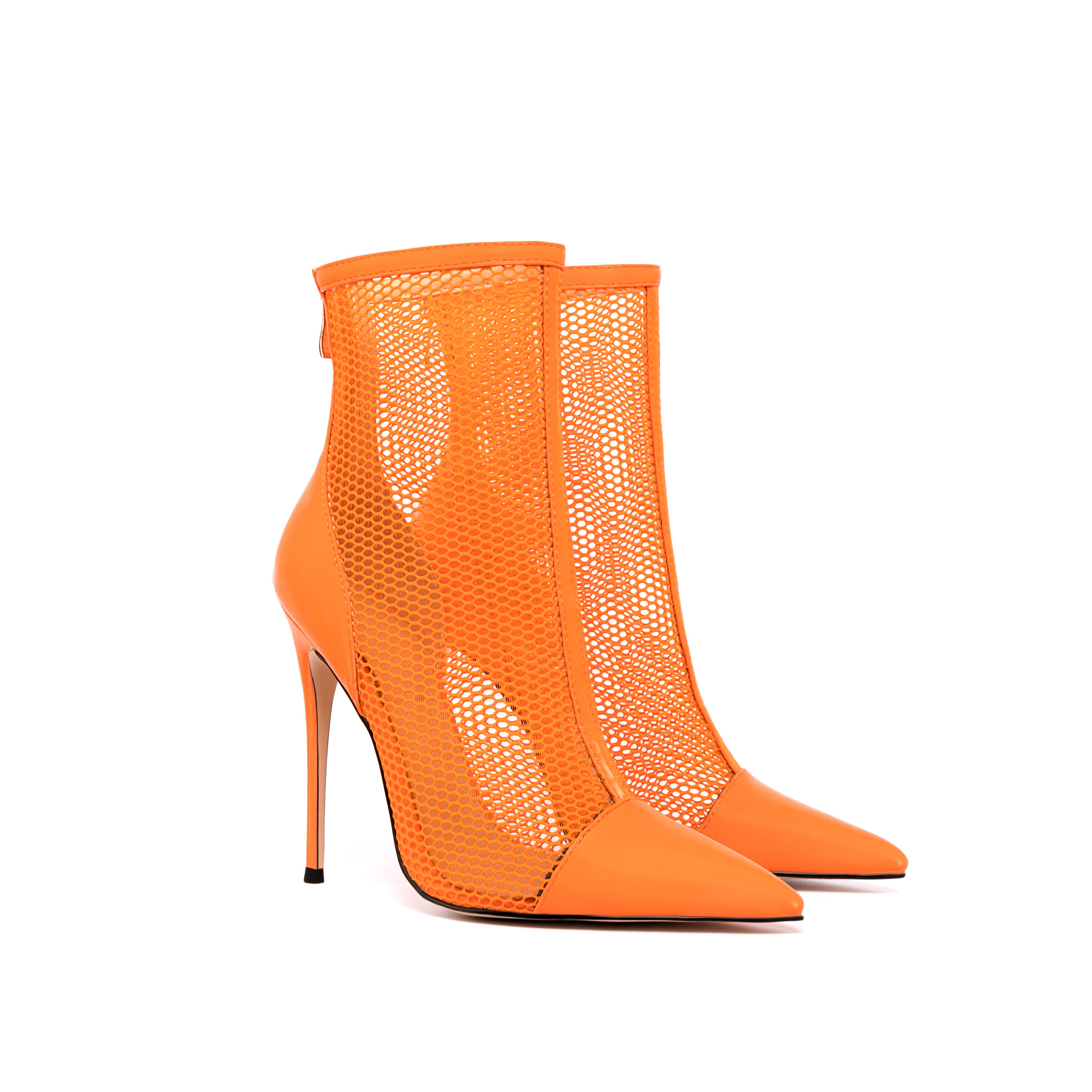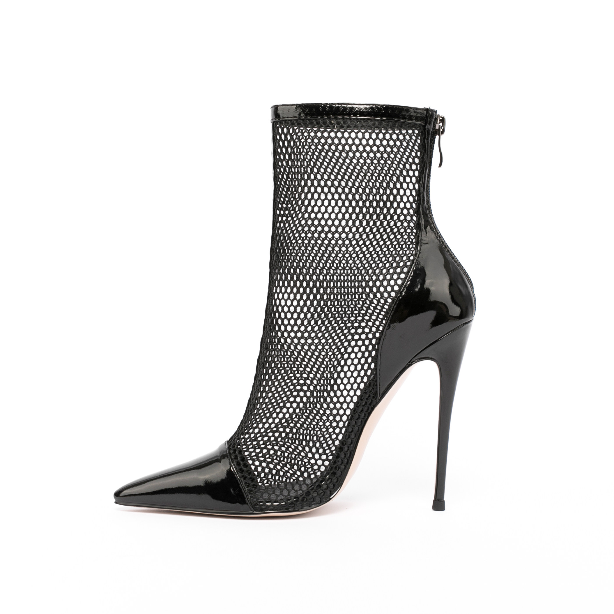 淘宝欧美外贸网纱透气性感细高跟凉靴拼色尖头短靴夏搭配裙子时装凉鞋