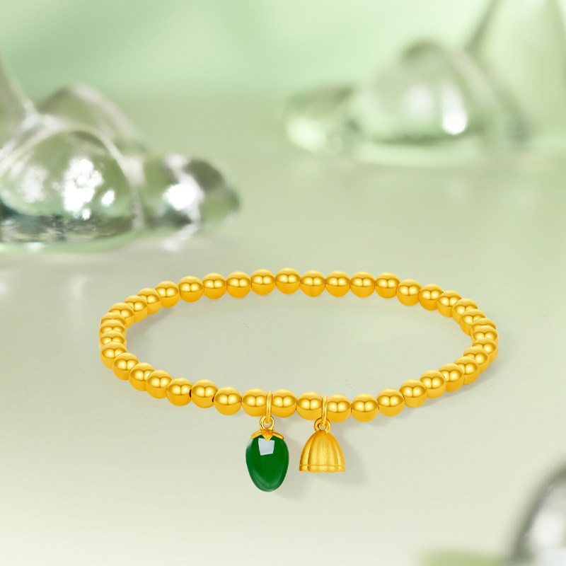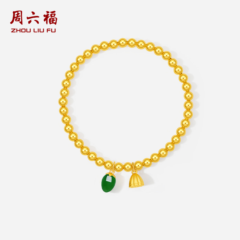 天猫周六福珠宝黄金金镶玉手链和田碧玉莲蓬手串手饰新年礼物