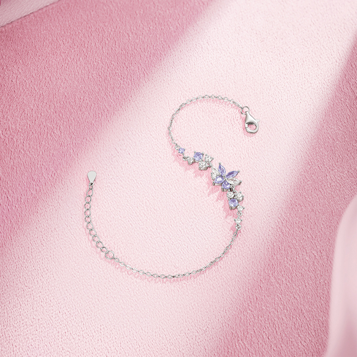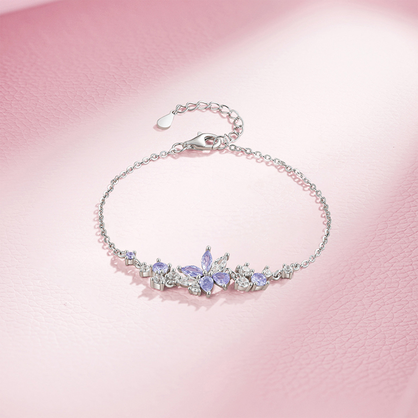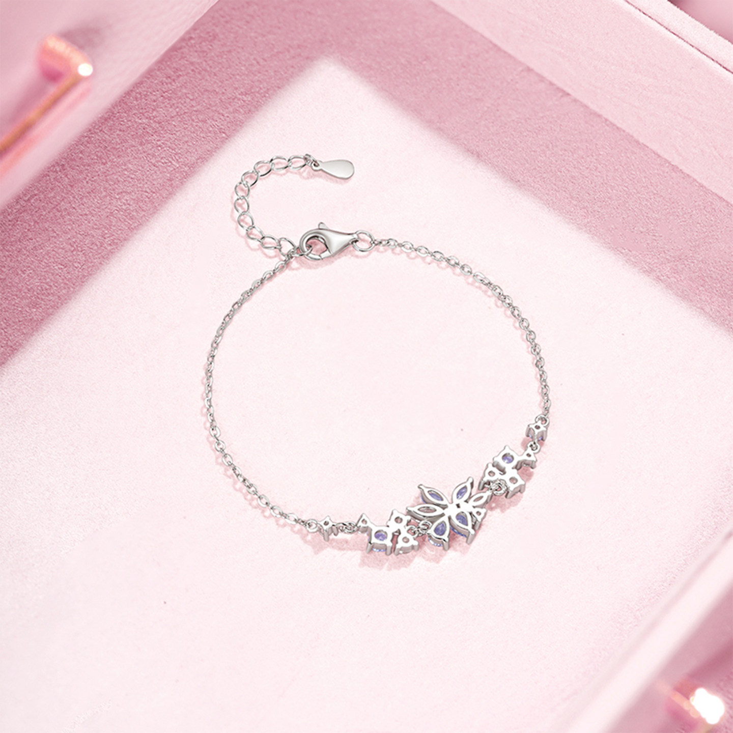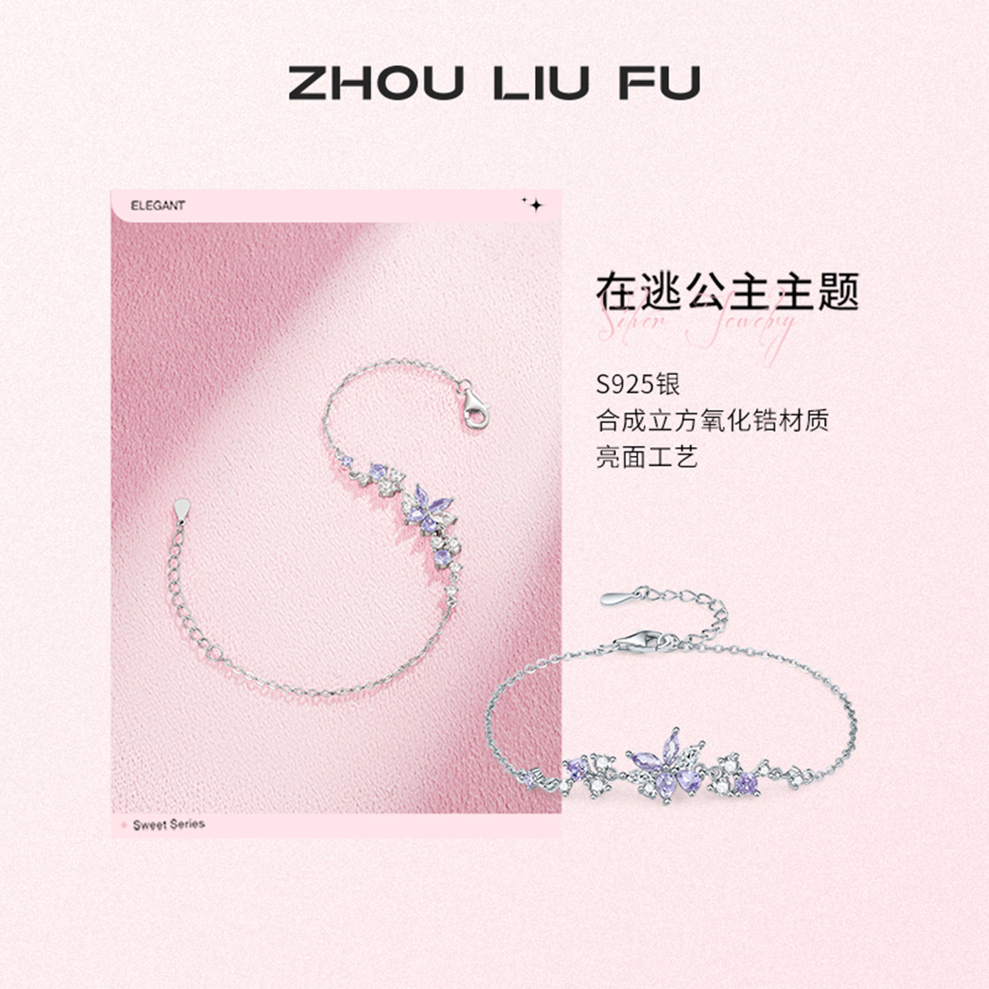 天猫周六福紫藤花手链女款紫云坠梦S925银手饰百搭本命年礼物送女友