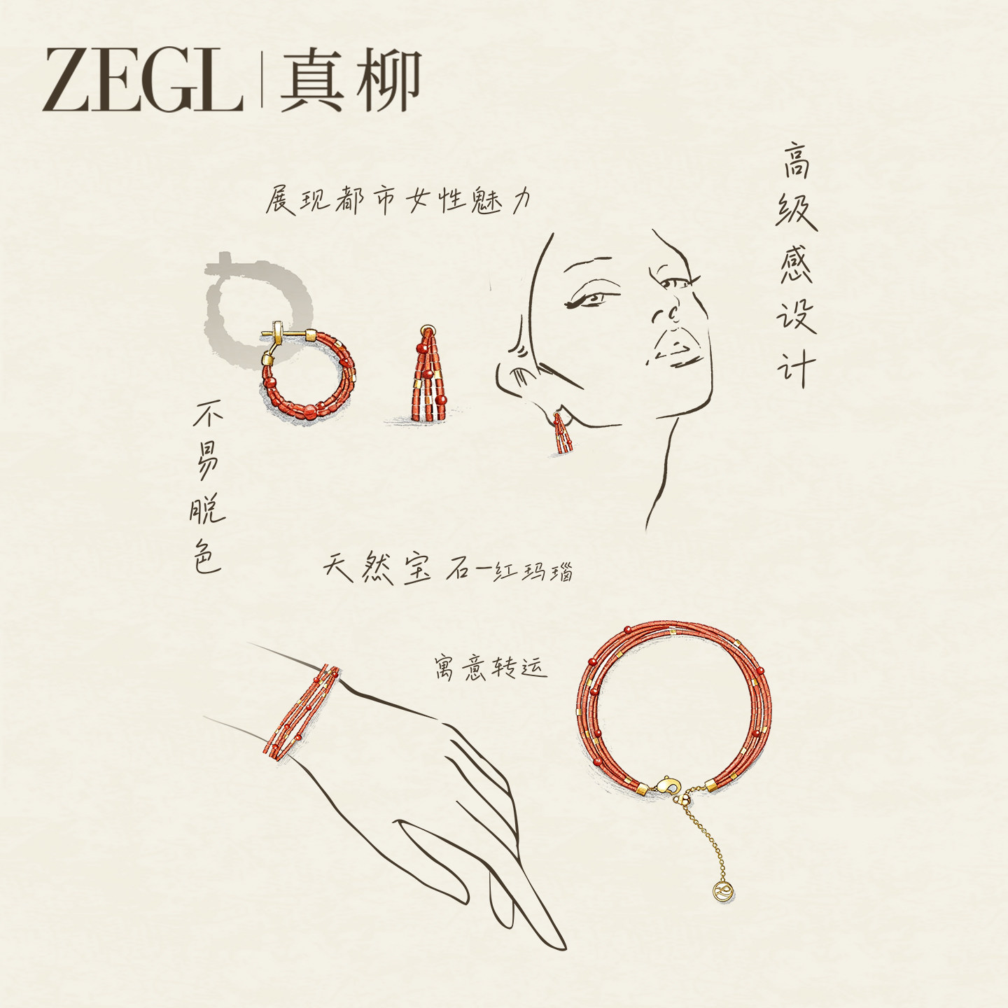 天猫ZEGL晚霞系列天然红玛瑙手链高级轻奢小众手串女红色新年秋冬手饰