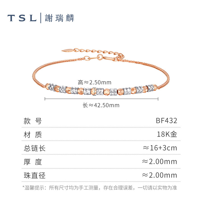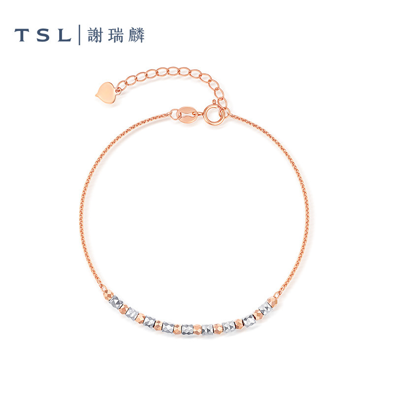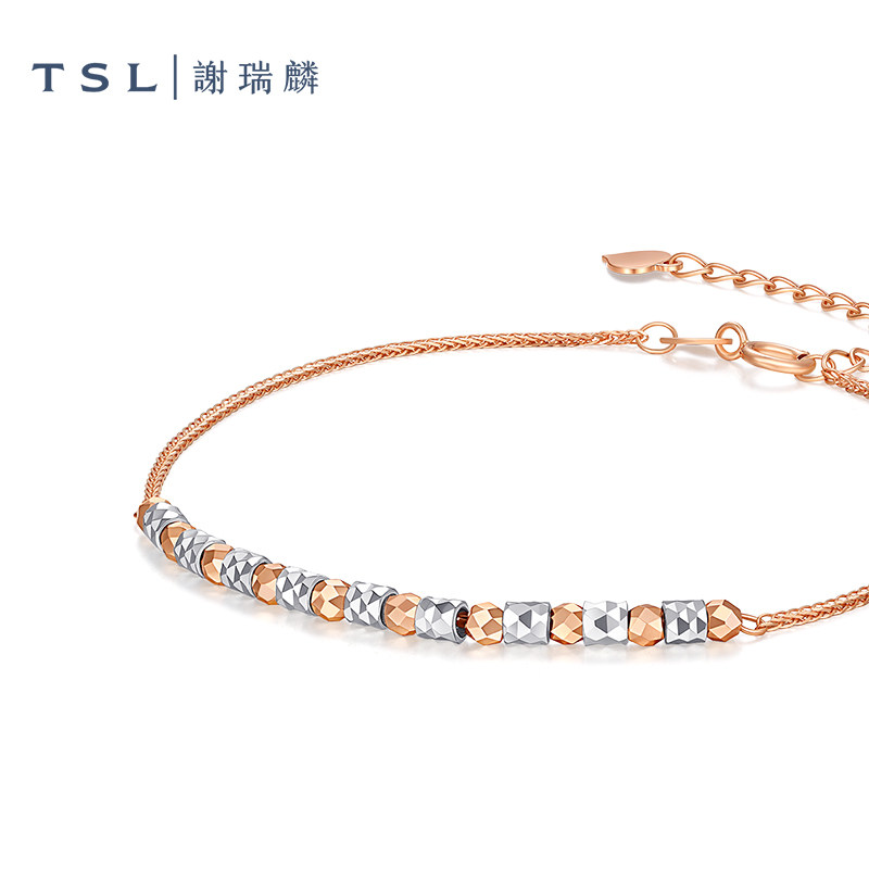 天猫TSL谢瑞麟18K金手链双色金珠手饰玫瑰金18k白手饰女士新品BF432
