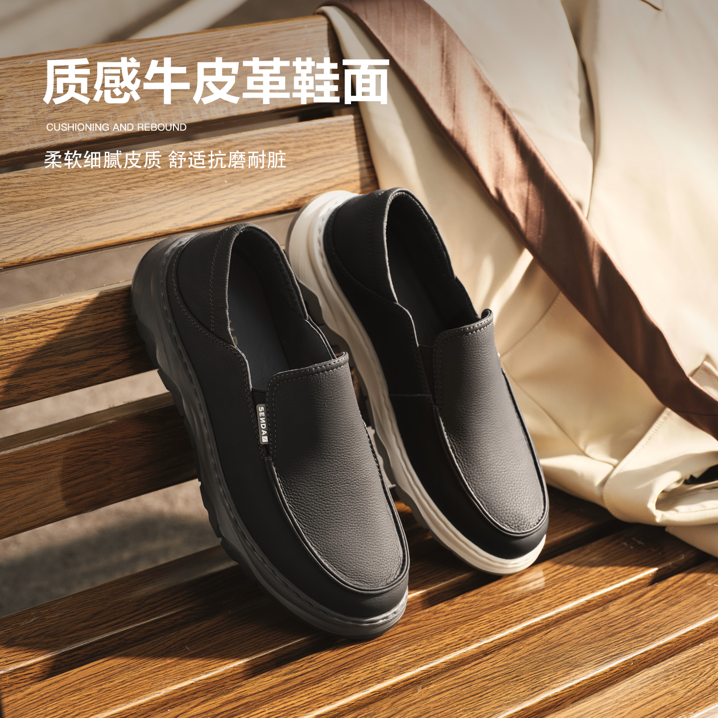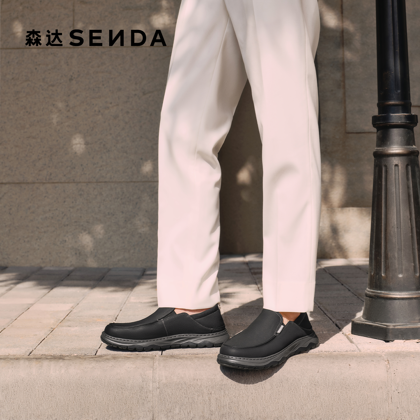 天猫森达休闲皮鞋男2026春新商场同款一脚蹬软底舒适软面皮鞋2BQ01AM6