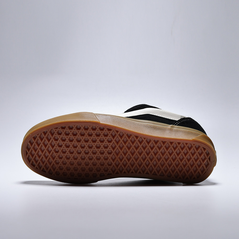 VANS范斯KnuSkool CL运动休闲鞋(型号VN000DAJYJ7)融合经典滑板基因与现代潮流设计,男女同款,适合日常穿搭。鞋面采用优质帆布材质,轻便透气,搭配复古低帮轮廓,致敬90年代校园风格。加厚鞋舌与侧边硫化橡胶条增强包裹性与耐磨性,提升穿着舒适度。经典华夫格大底提供出色抓地力,兼顾防滑与灵活。简约黑白配色百搭易衬,无论是街头造型还是休闲出行都能轻松驾驭。KnuSkool CL在保留VANS标志性元素的同时,注入复古校园气息,是追求个性与舒适并重的潮流之选。