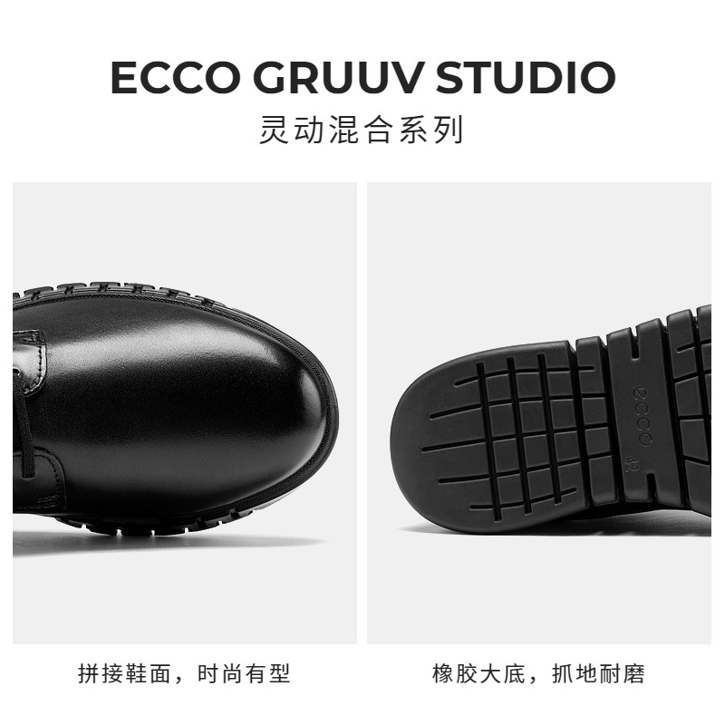 天猫ECCO爱步时尚风琴鞋男 舒适轻便耐磨百搭休闲皮鞋 灵动混合512314