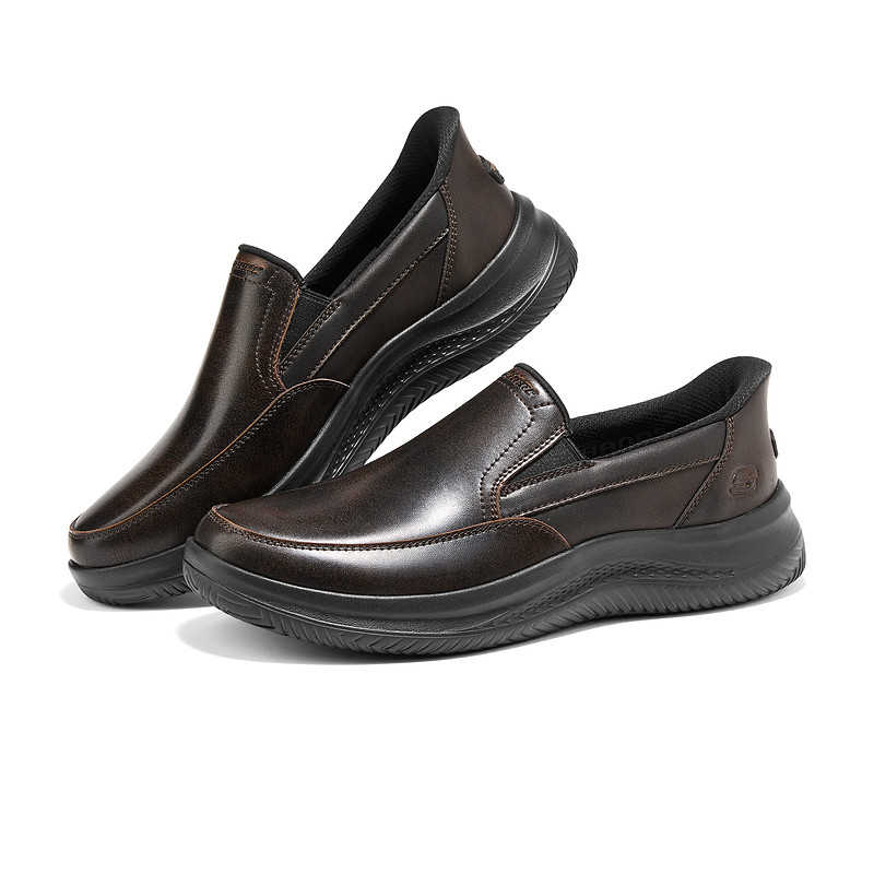 天猫斯凯奇闪穿鞋2026秋冬新款男鞋商务休闲鞋一脚蹬低帮舒适软底皮鞋