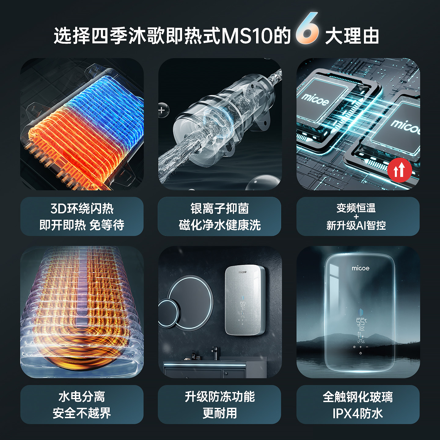 四季沐歌即热式电热水器家用洗澡智能变频恒温速热小型负离子净化