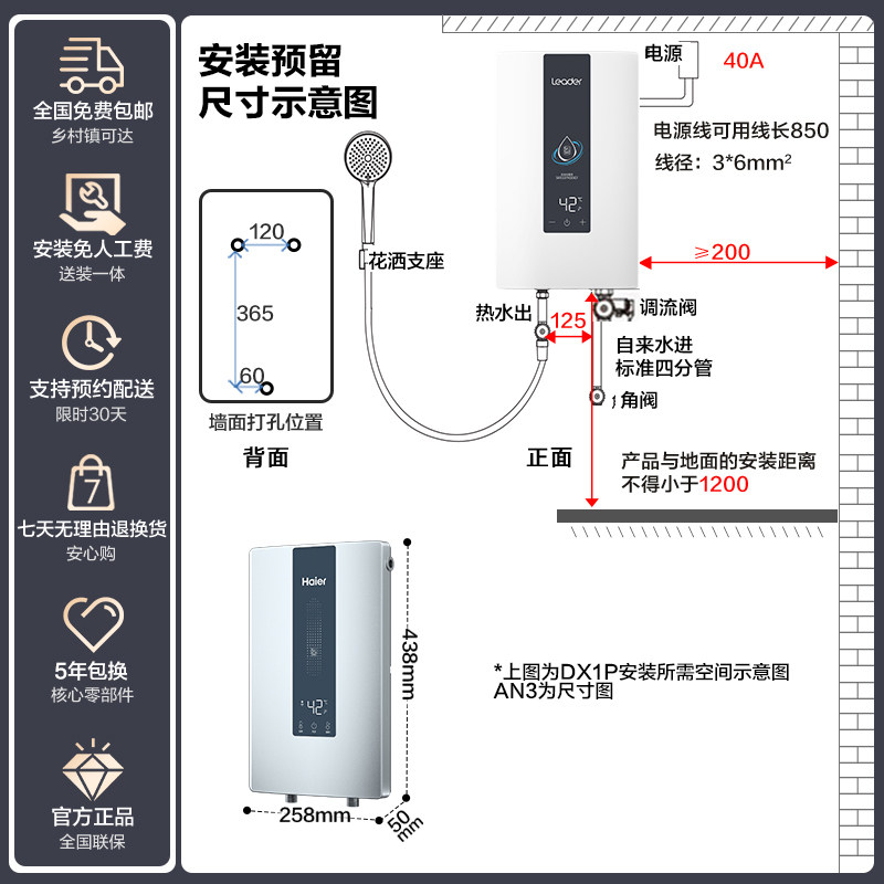 天猫海尔出品统帅即热式电热水器变频恒温家用快速热卫生间洗澡DX1P