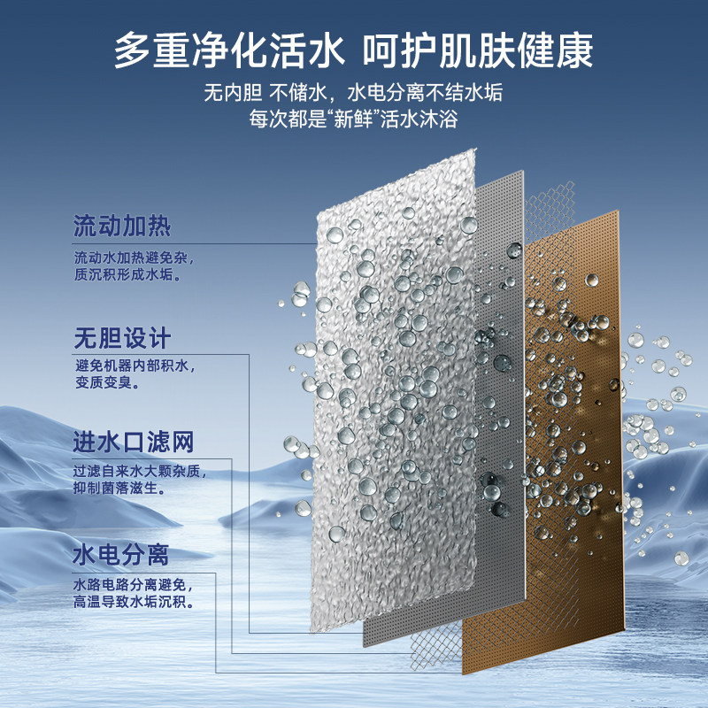 天四季沐歌即热式电热水器家用洗澡智能变频恒温速热小型负离子净化
