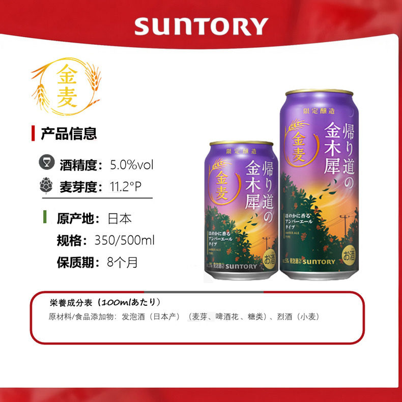 淘宝日本进口三得利金麦350ml罐限定柑橘啤酒四季拉格麦芽晚酌的流派
