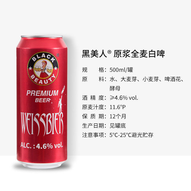 淘宝黑美人11度精酿全麦白啤酒整箱24瓶罐装啤酒500ml国产酿制非临期