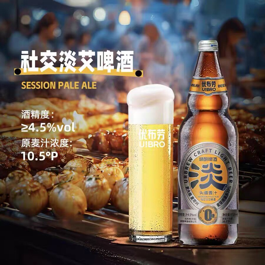 淘宝优布劳精酿啤酒大淡淡啤酒958ml*6瓶0糖0脂社交淡艾啤酒4.5度精酿