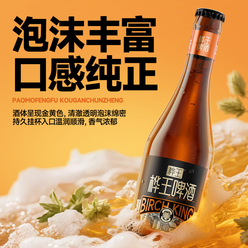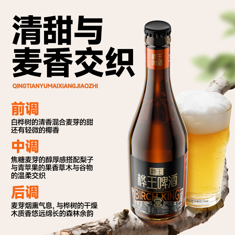 天猫桦王小兴安岭白桦树汁精酿啤酒330ml*6瓶原浆整箱年货送礼送长辈