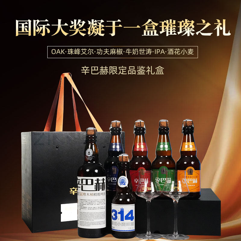 天猫辛巴赫精酿高端啤酒品鉴礼盒商务宴请礼赠带杯子套装6瓶装礼盒装