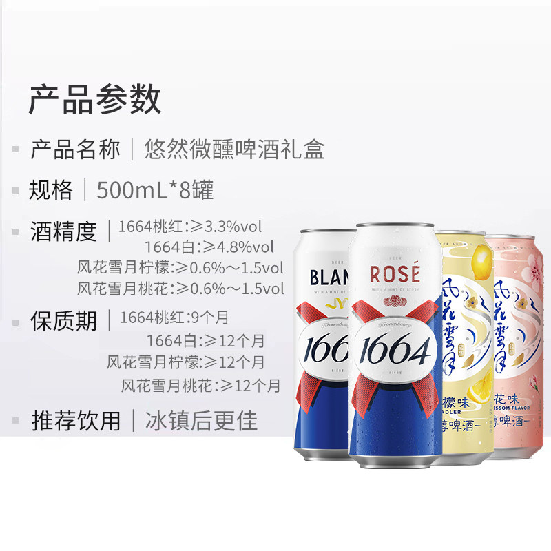 天猫【节日送礼】1664啤酒微醺礼盒500ml8罐 法式浪漫好友欢聚整箱装