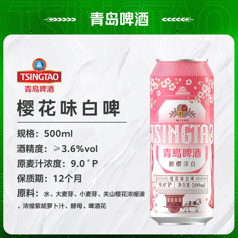 淘宝青岛啤酒精酿樱花味白啤500ml*12听罐啤樱花版整箱包邮