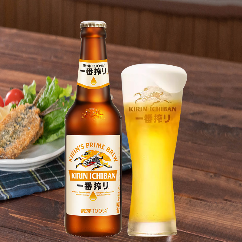 KIRIN麒麟一番榨瓶装啤酒330ml×24瓶,是一款中浓度清爽型麦芽啤酒,精选优质麦芽,仅采用第一道麦汁酿造,保留纯粹麦香与顺滑口感。酒体清亮透明,泡沫细腻持久,入口清爽微苦,回味甘甜,平衡感极佳。酒精浓度适中,适合多种饮用场景,无论是日常小酌、朋友聚会还是搭配轻食料理,皆能带来愉悦体验。24瓶装家庭装设计,满足家庭或小型聚会需求,冷藏后饮用更添清凉畅爽。麒麟一番榨以匠心工艺呈现日式啤酒的精致与纯净,是追求品质与口感消费者的理想之选。