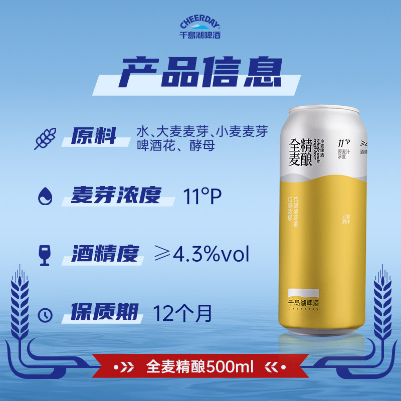 淘宝千岛湖全麦精酿啤酒500ml德式白啤11°P精酿白啤麦芽香口感清爽