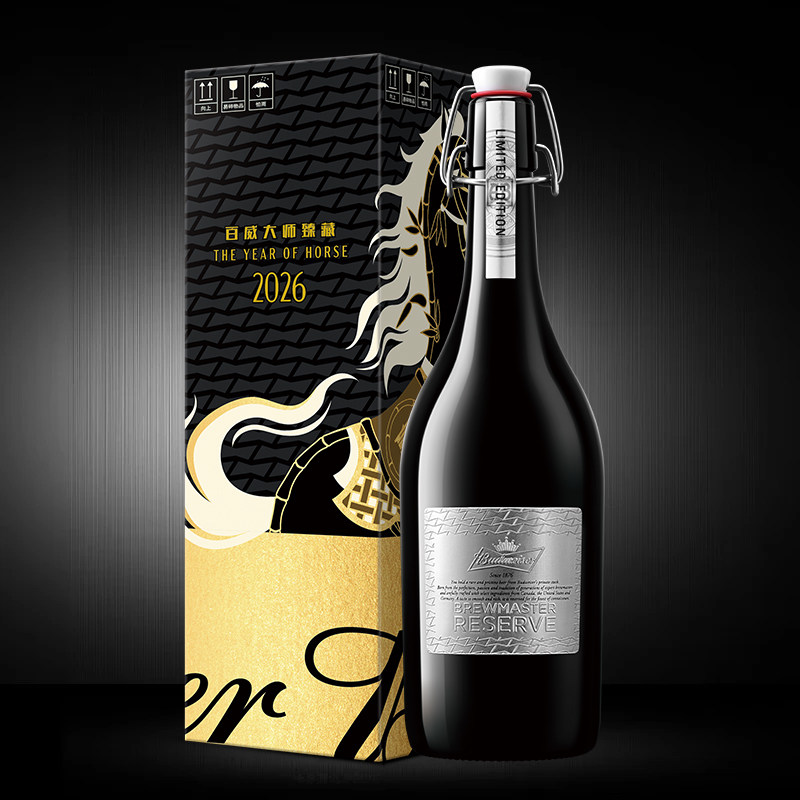 天猫百威啤酒大师精酿臻藏版798ml*2瓶礼盒装马年限定送礼高端含酒杯
