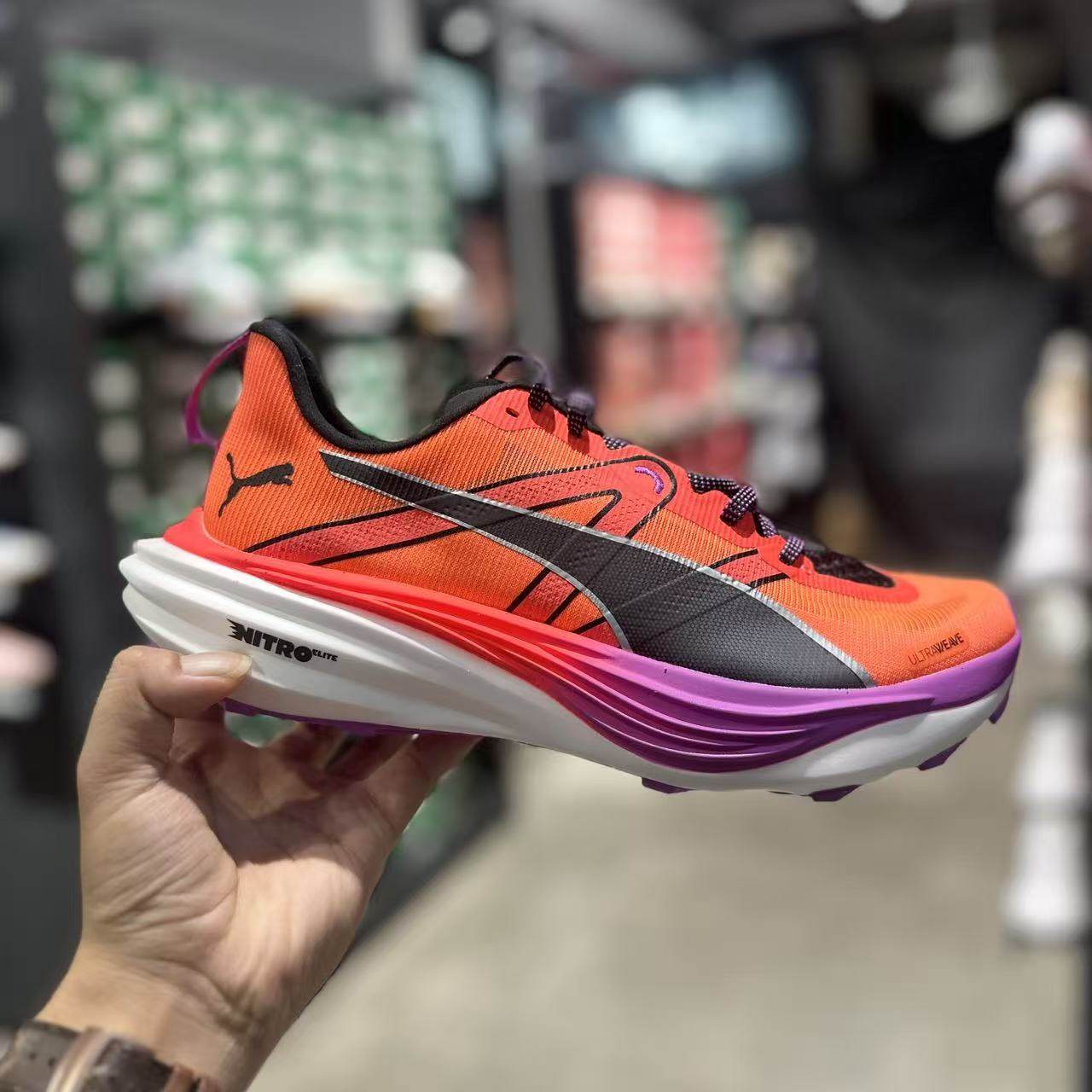 PUMA彪马Deviate NITRO Elite Trail男子跑步鞋(型号310034)专为追求速度与耐力的跑者设计。搭载革新性NITRO Elite中底科技,提供卓越轻量回弹,有效减震,提升长距离奔跑的舒适性。鞋面采用工程网眼材质,增强透气性,保持足部干爽。外底配备PUMAGRIP防滑橡胶,适应多种路面,尤其适合越野与混合地形训练。流线型设计融合时尚与功能性,兼顾公路与轻越野场景。Deviate NITRO Elite Trail不仅提升跑步表现,更以环保理念打造,部分材料源自可持续资源,是现代跑者高性能与环保兼具的理想之选。