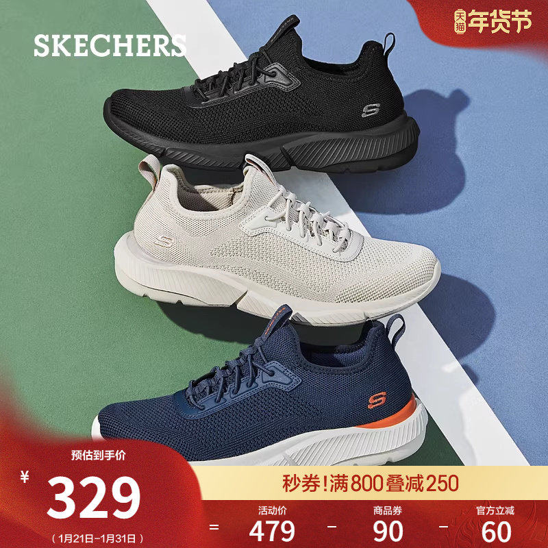 斯凯奇舒适百搭春季流行时尚男跑步鞋厚底增高休闲运动鞋软底鞋