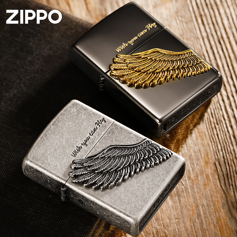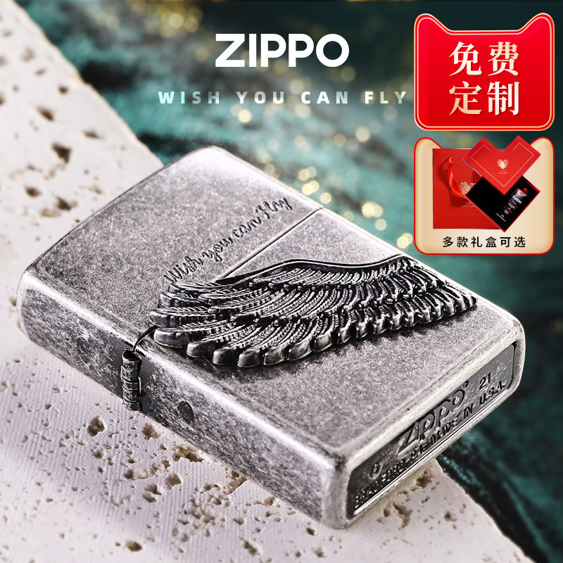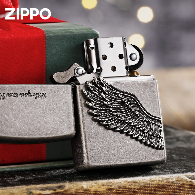 天猫【新年礼物】zippo打火机飞的更高天使之翼古银黑冰贴章男士收藏