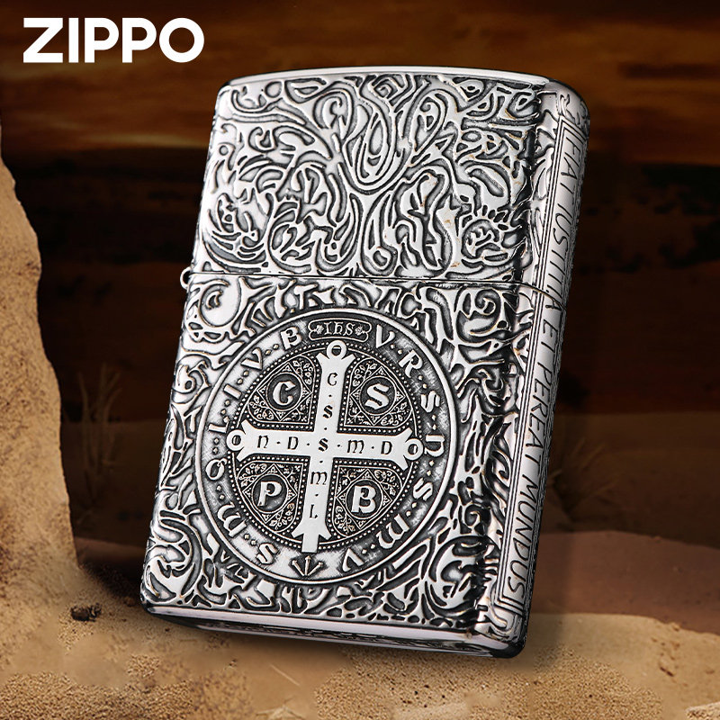 zippo正品打火机 康斯坦丁牧师镀银雕刻防风煤油送男朋友新年礼物