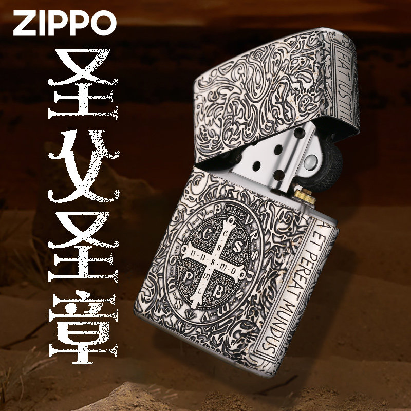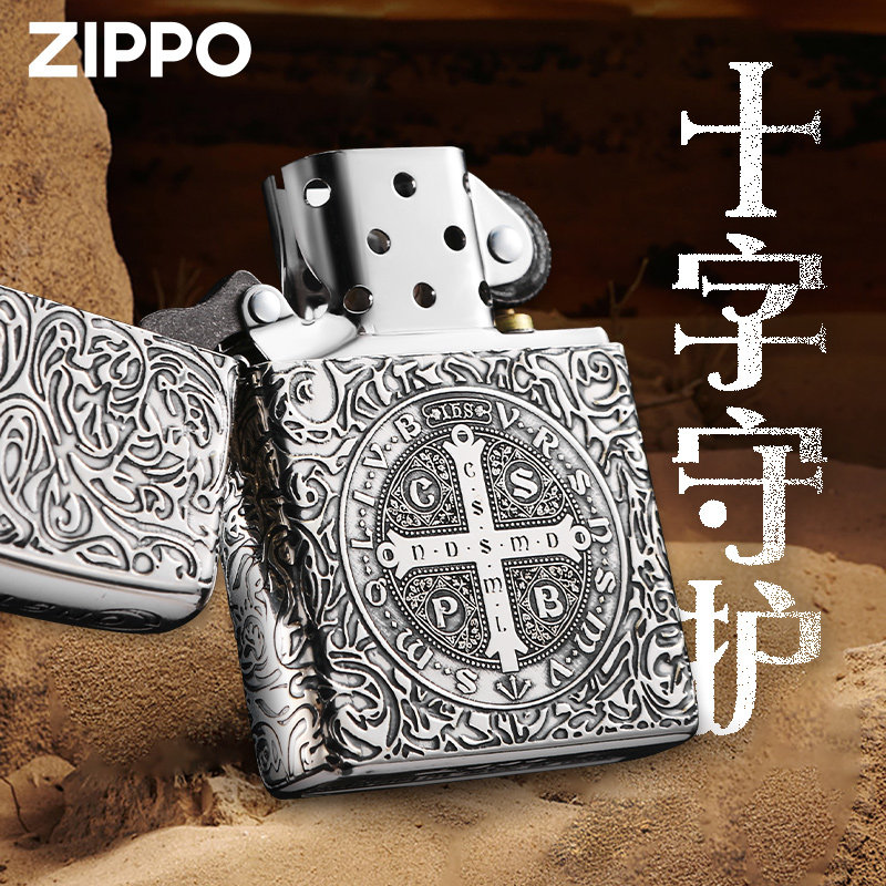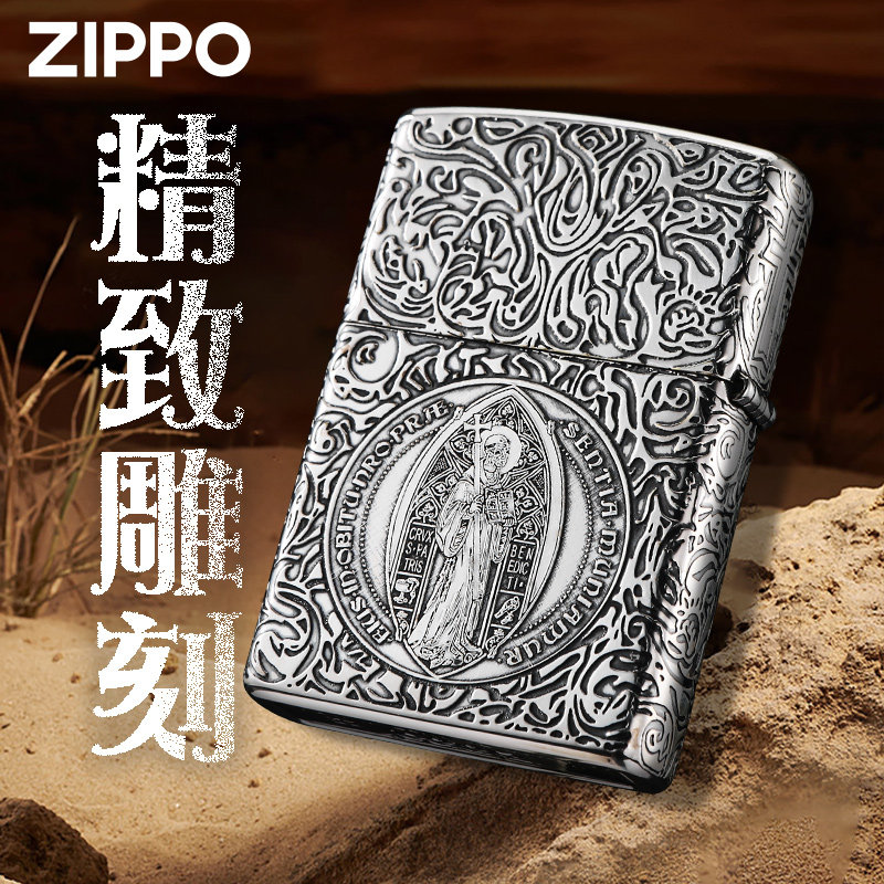 天猫zippo正品打火机 康斯坦丁牧师镀银雕刻防风煤油送男朋友新年礼物