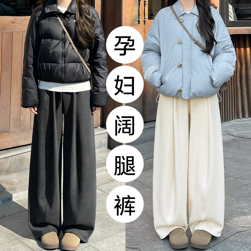 天猫猫人孕妇裤2025新款秋冬外穿糯米裤无托腹加绒加厚休闲阔腿裤冬装