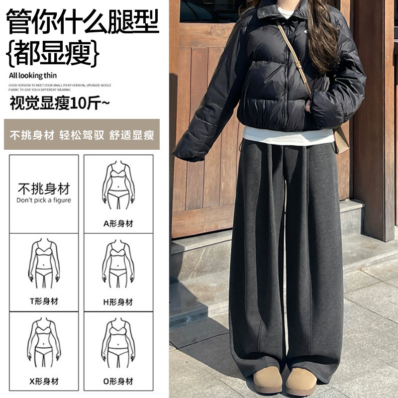 淘孕妇春秋毛呢阔腿裤大码显瘦休闲裤宽松显瘦加绒加厚奶奶裤弯刀裤