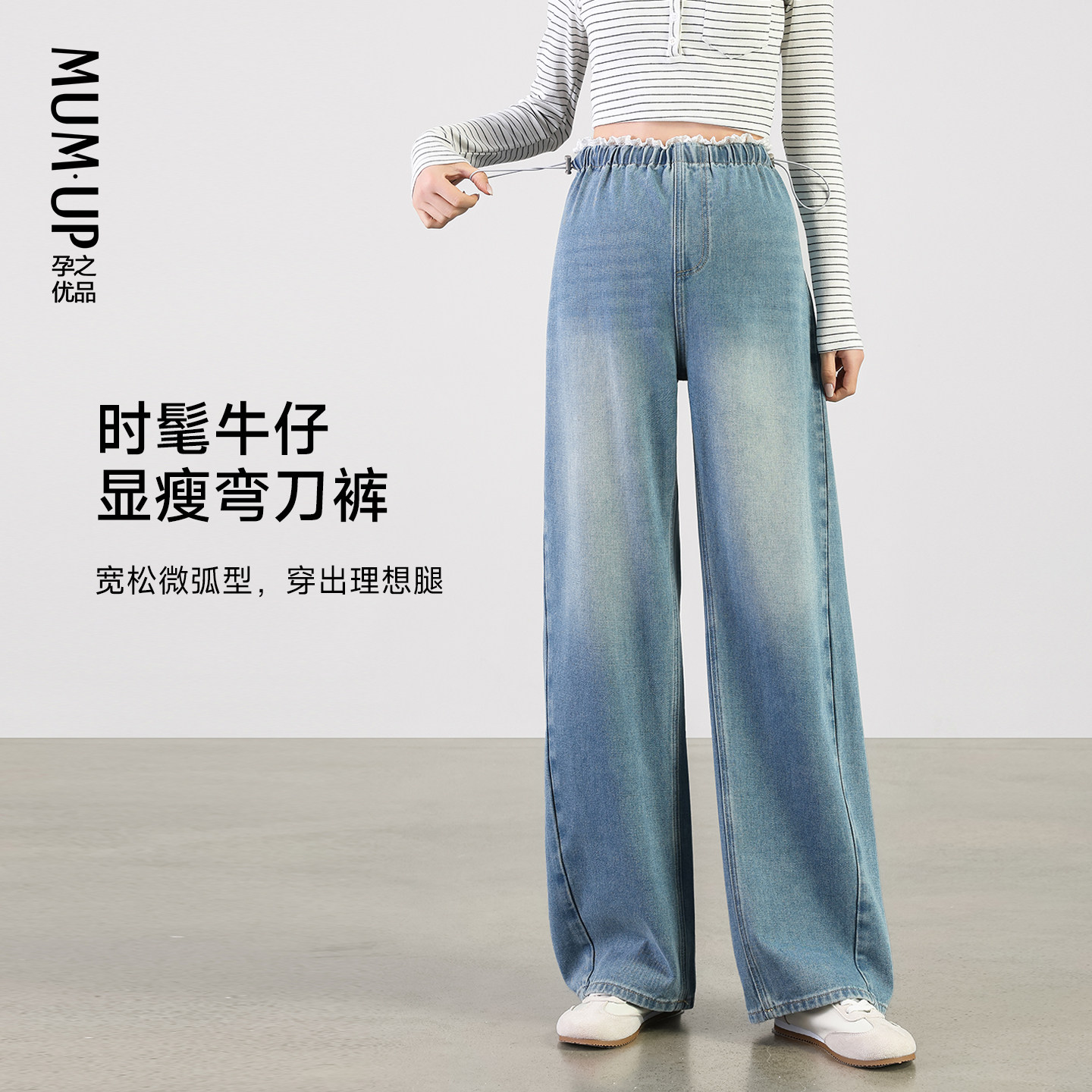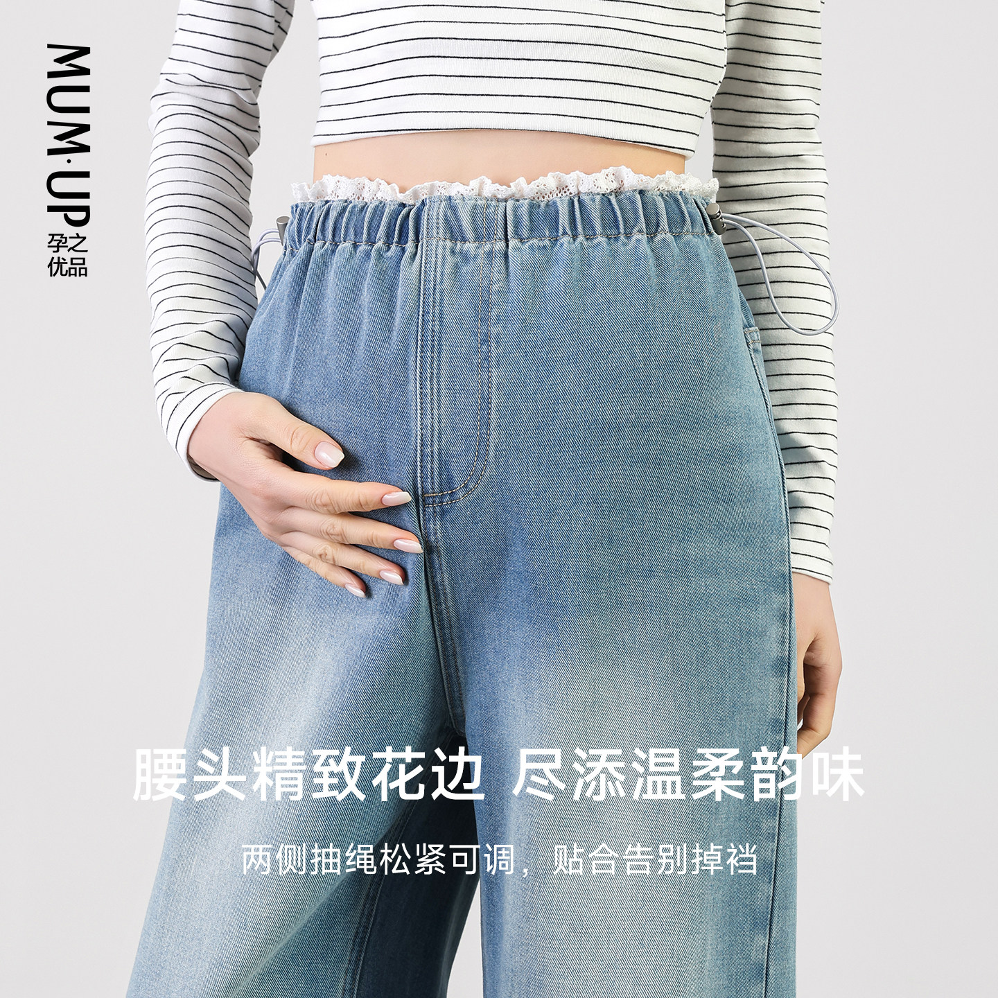 天猫【新品】孕妇花边牛仔裤2026春季新款无托腹不勒肚孕妇弯刀阔腿裤