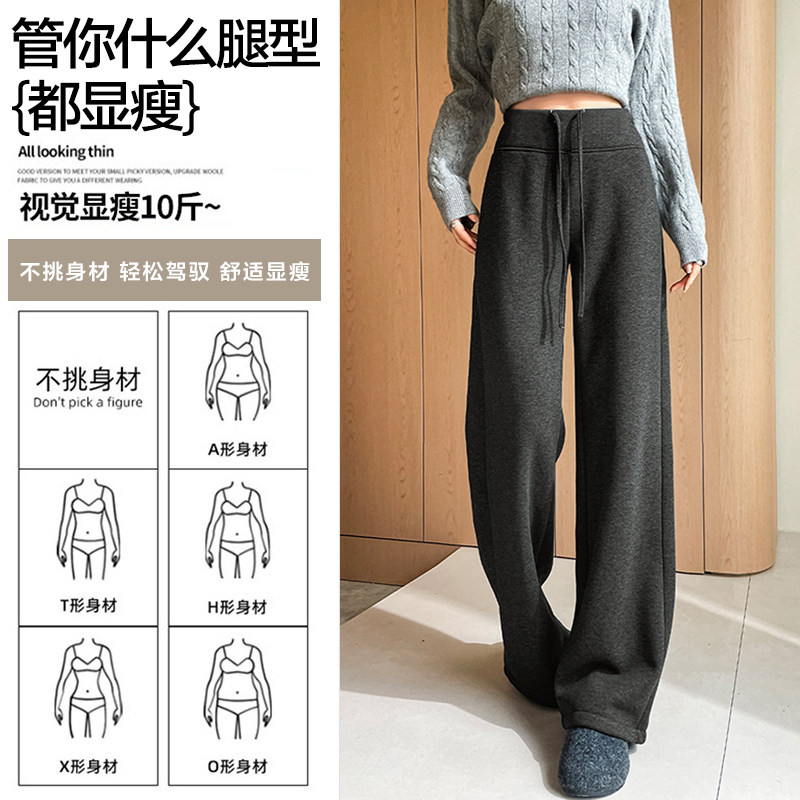 过冬外穿羊羔绒孕妇裤子秋冬季阔腿裤加绒厚保暖裤大码孕妇糯米裤