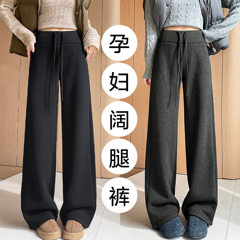 天猫孕妇裤子秋冬季2025新款外穿糯米裤无托腹加绒加厚休闲直筒阔腿裤