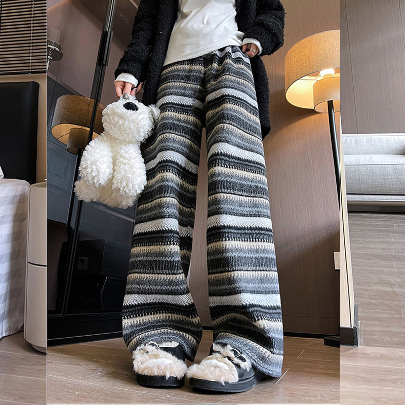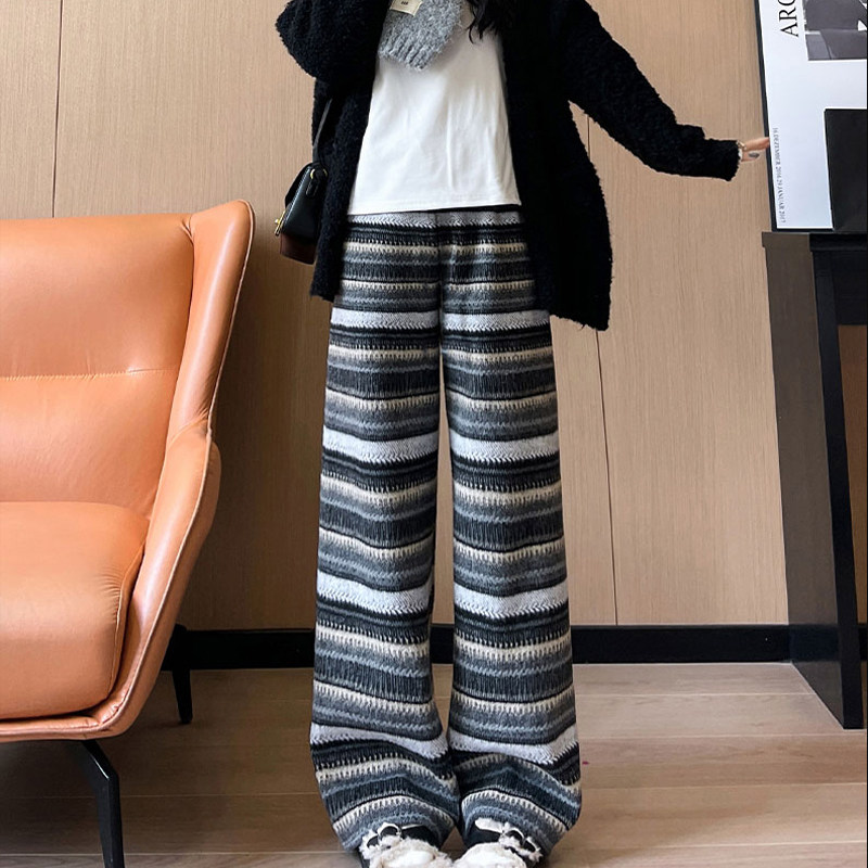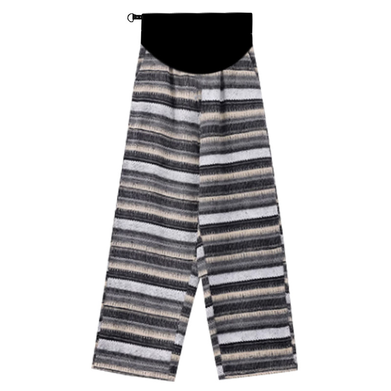 天猫孕妇毛呢阔腿裤春秋冬新款大码直筒休闲高个子条纹民族风托腹裤子