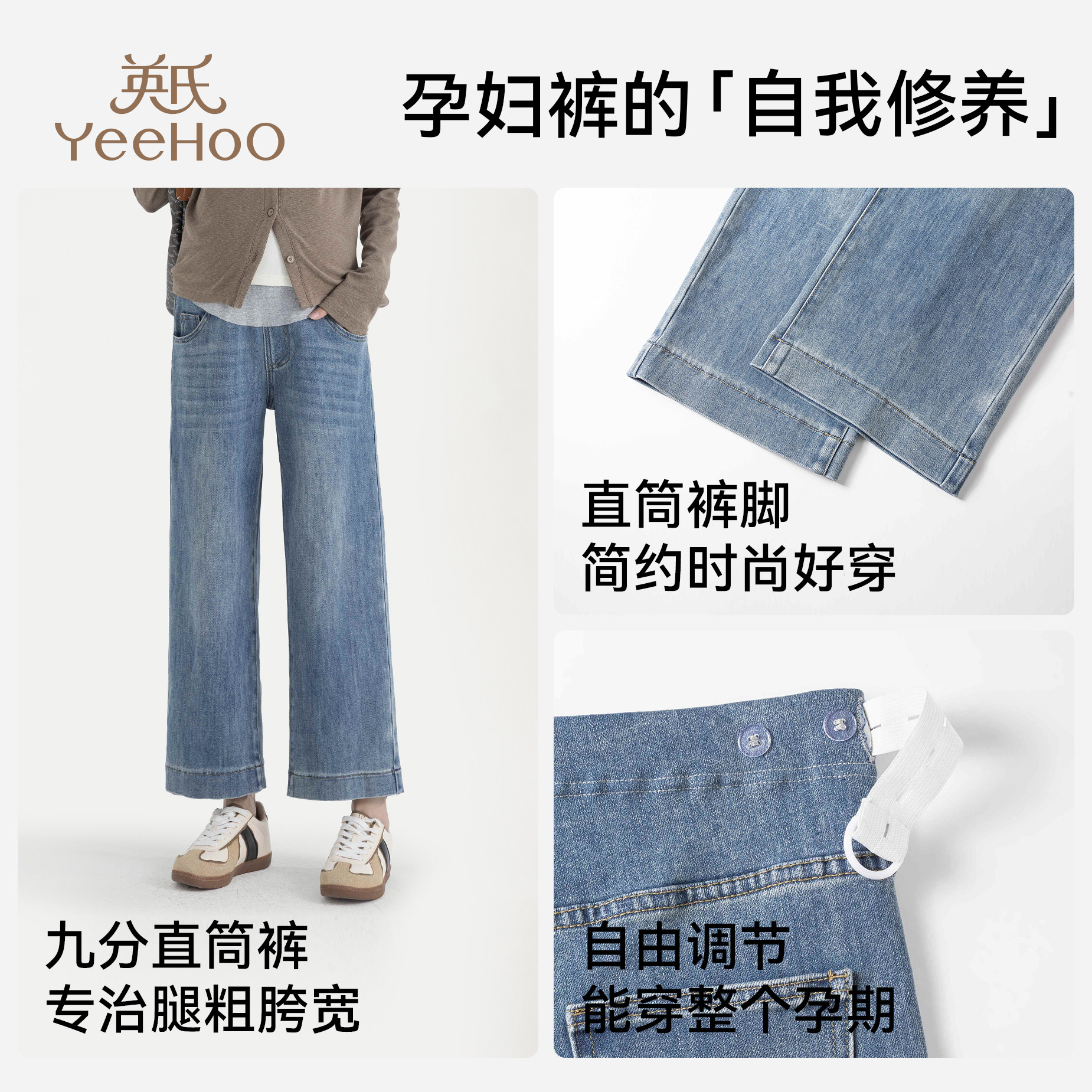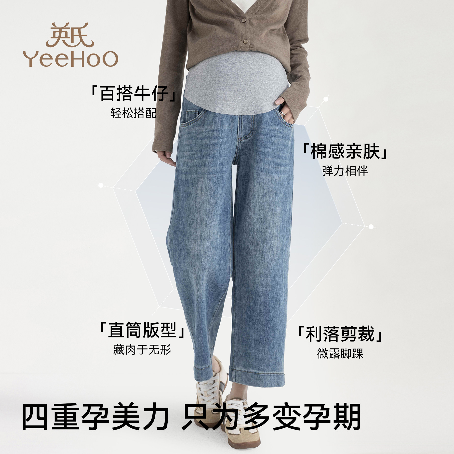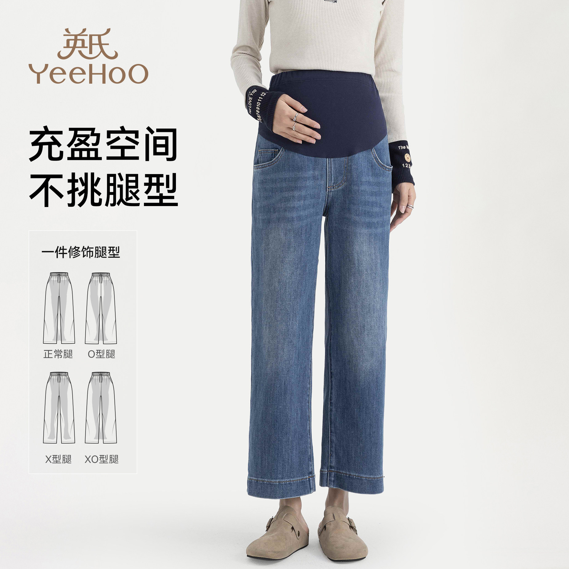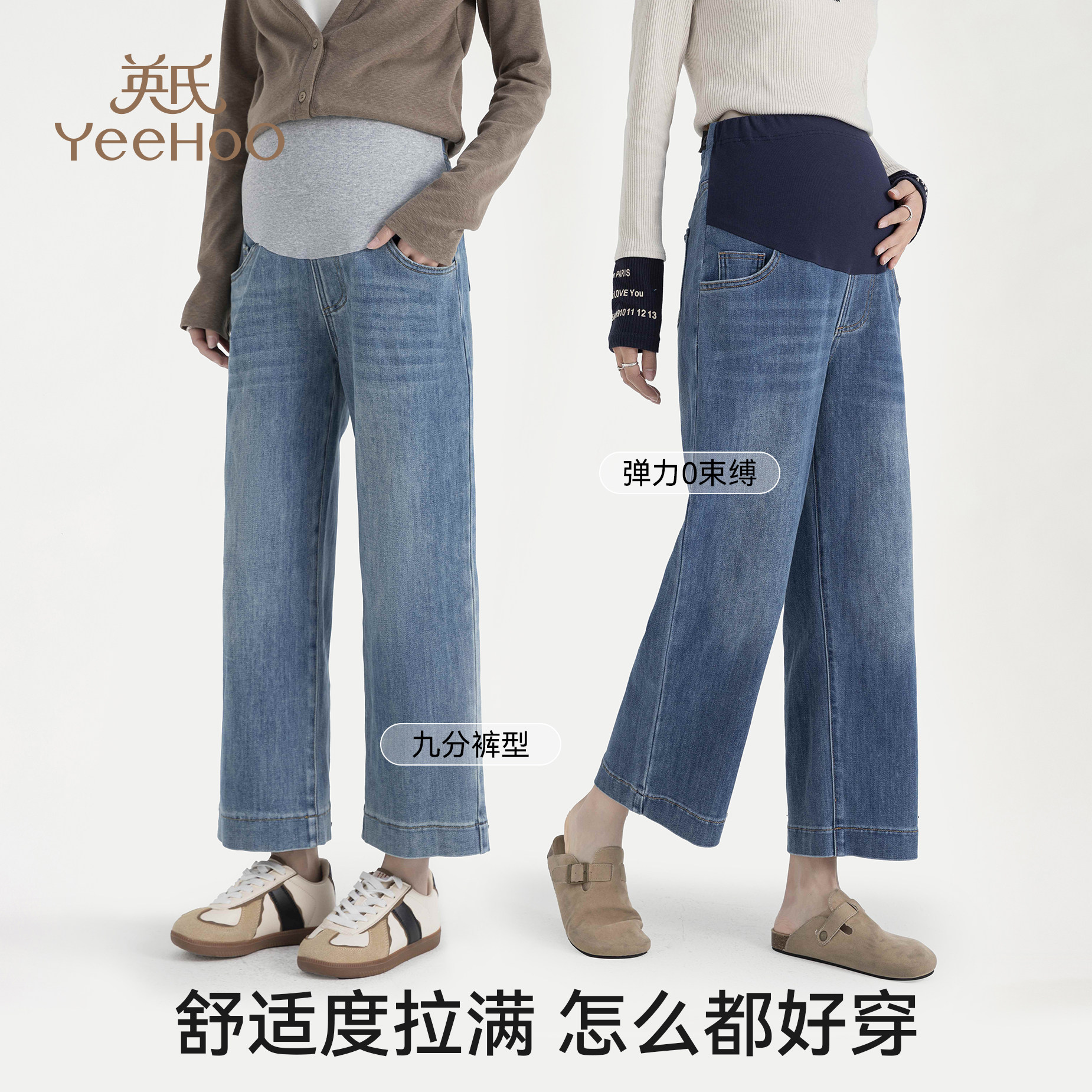 天猫英氏孕妇牛仔裤2026新款外穿托腹直筒九分裤春季百搭舒适阔腿裤子