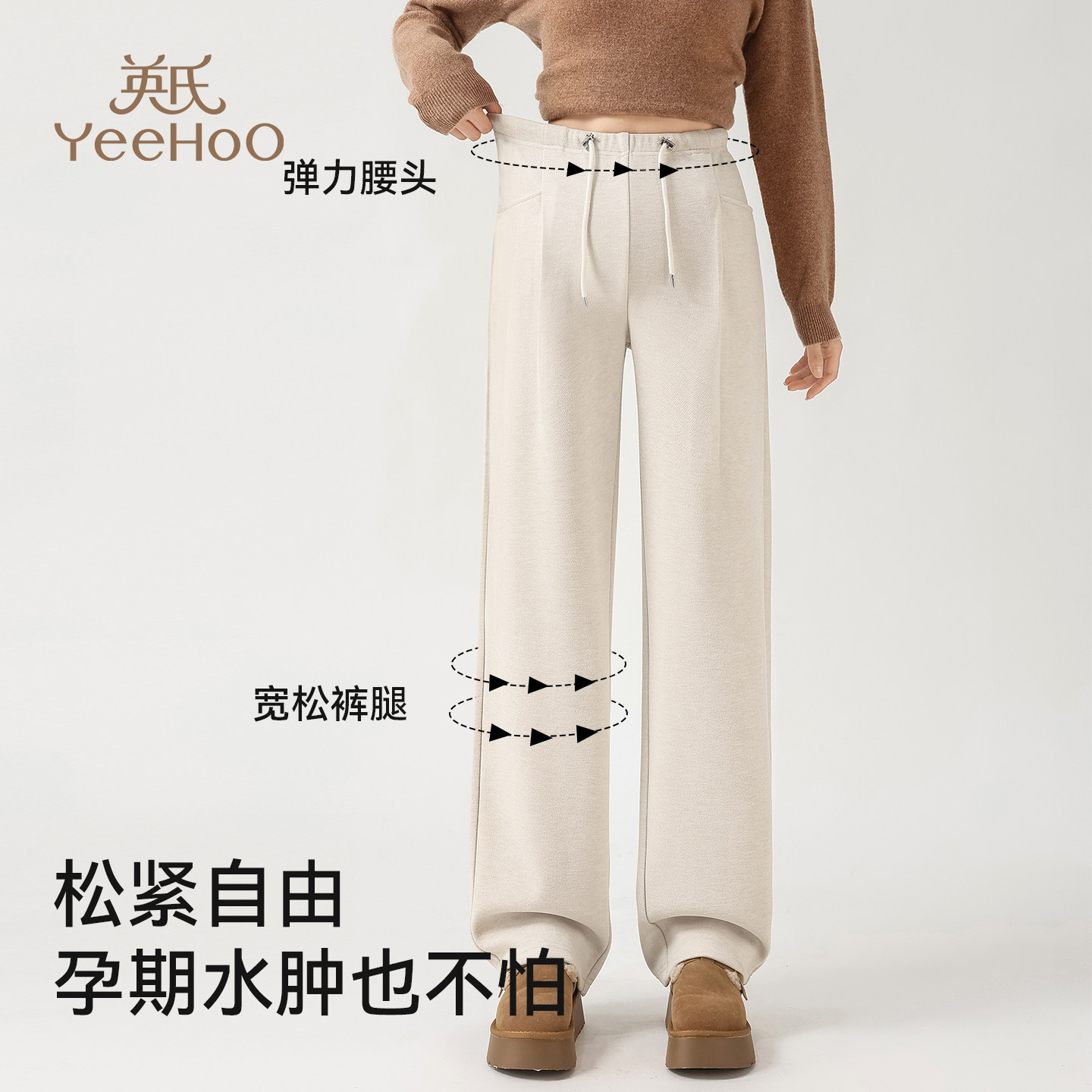 天猫英氏孕妇香蕉裤秋冬外穿显瘦百搭休闲裤2026新款高弹无托腹阔腿裤
