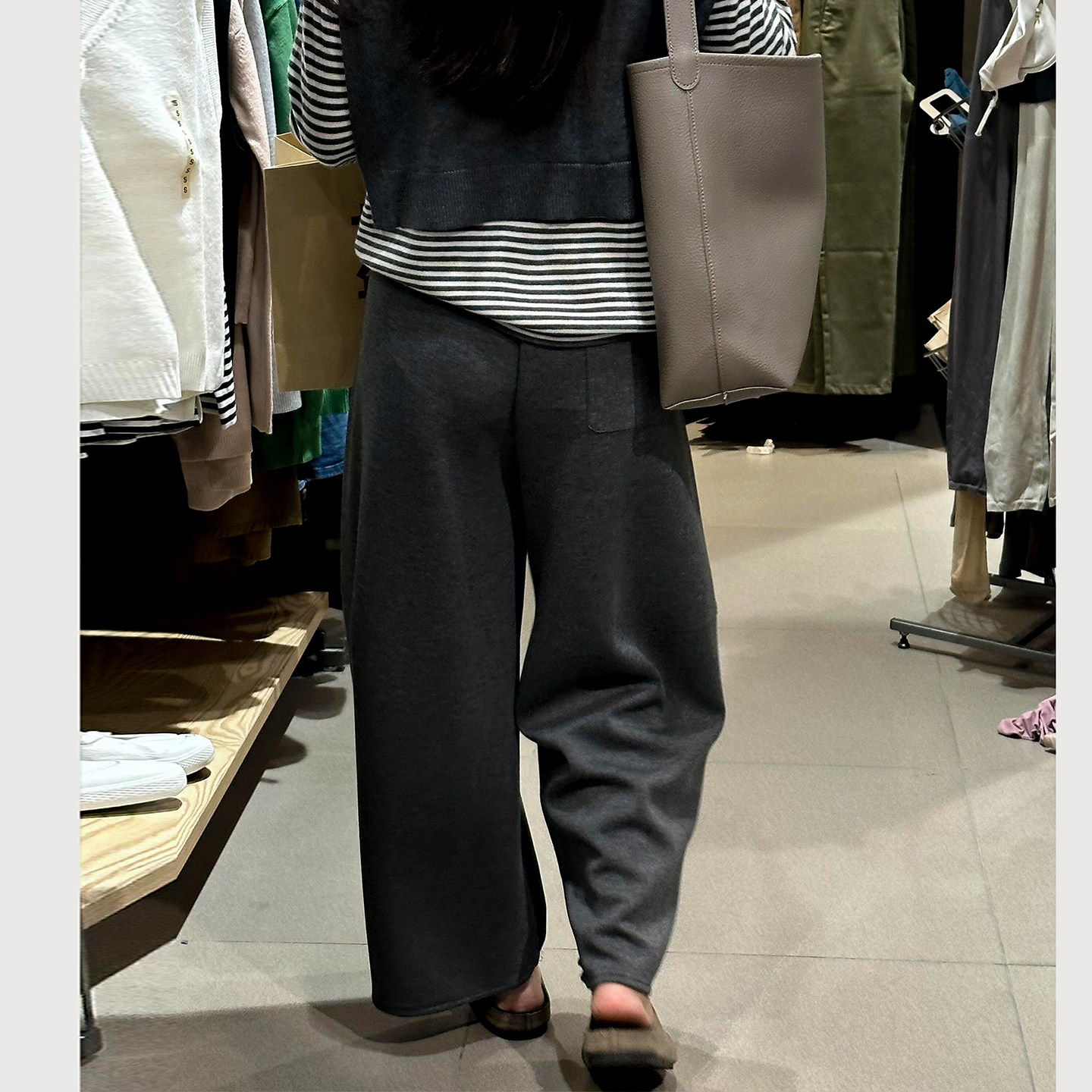 淘宝孕妇春秋毛呢阔腿裤大码显瘦休闲裤宽松显瘦加绒加厚奶奶裤弯刀裤