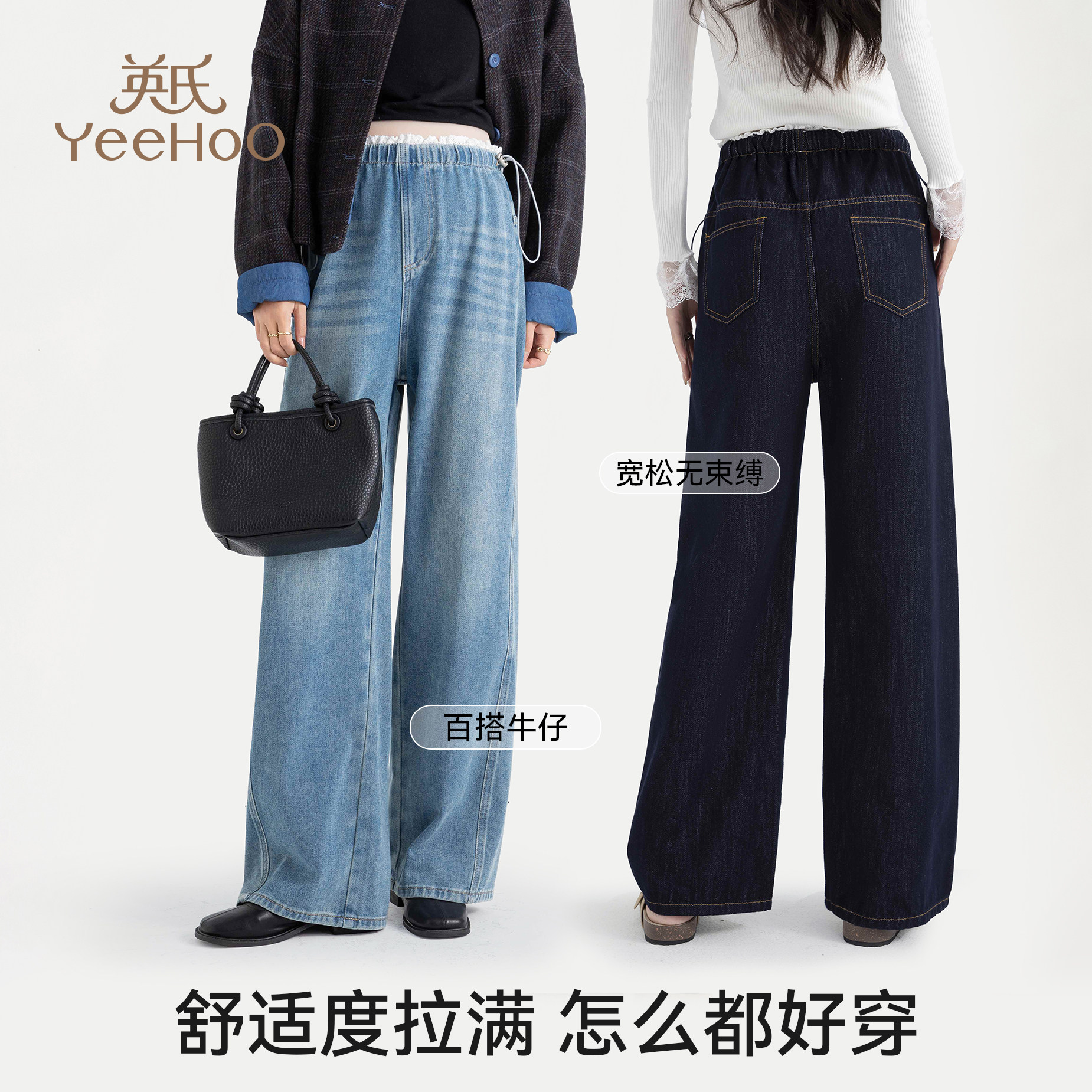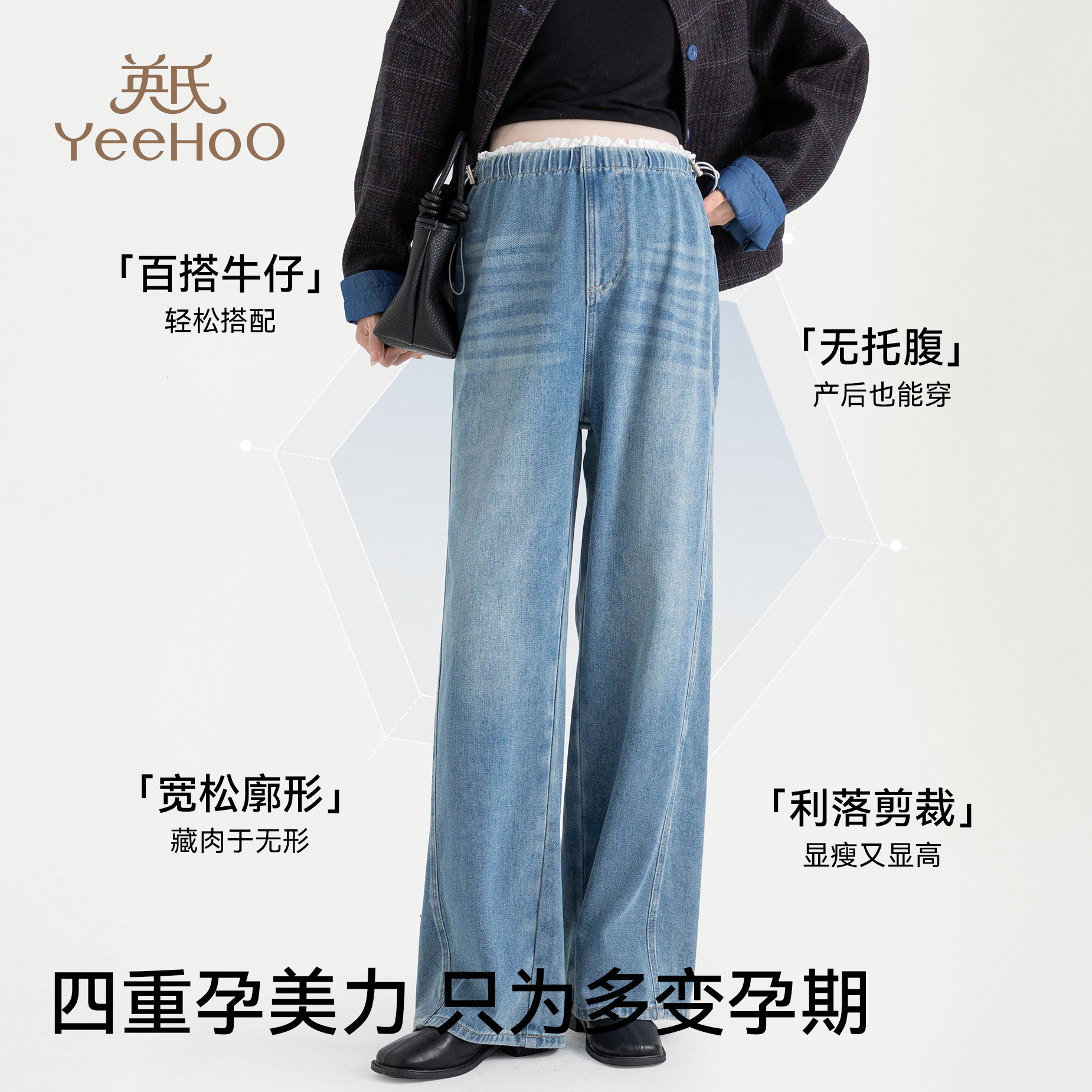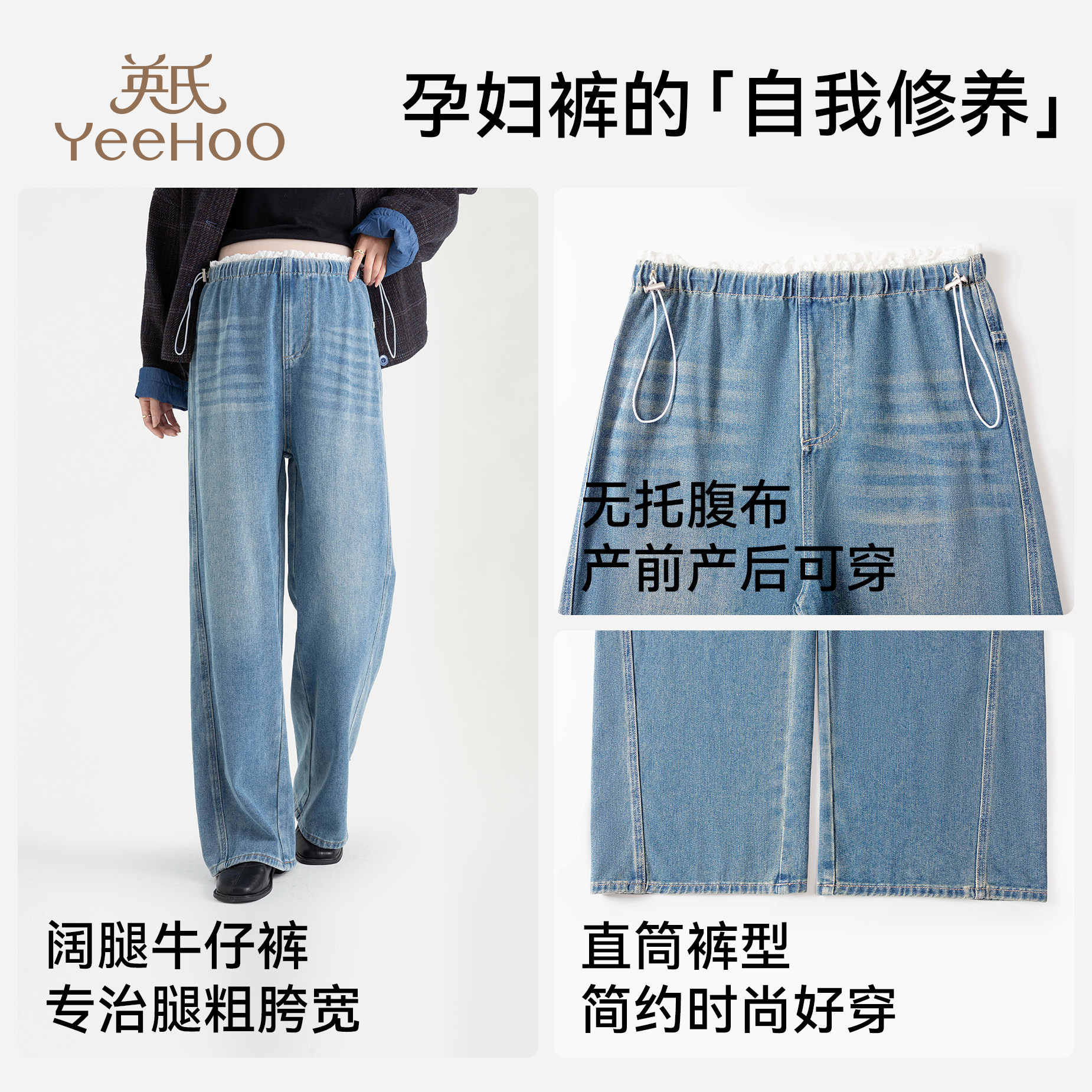 天猫英氏孕妇牛仔裤春季外穿百搭直筒裤2026新款修身显瘦无托腹阔腿裤