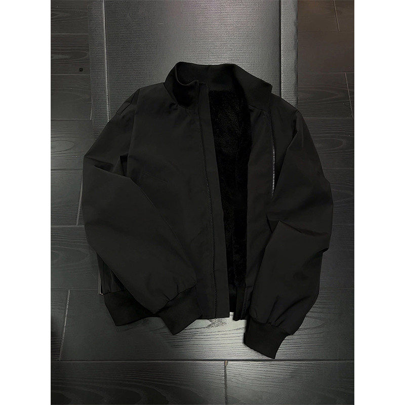 天猫黑色立领加绒夹克棉服男款冬季设计感棉衣外套加厚保暖夹棉棒球服
