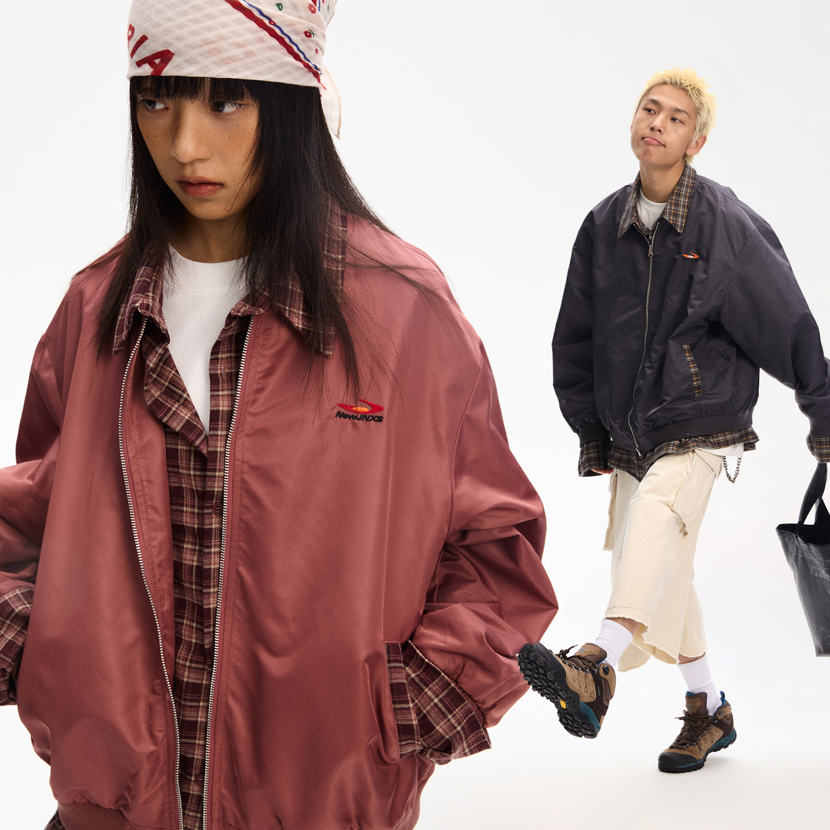 天猫江南先生NewJNXS美式复古拼接格子假两件棒球服夹克男女宽松外套