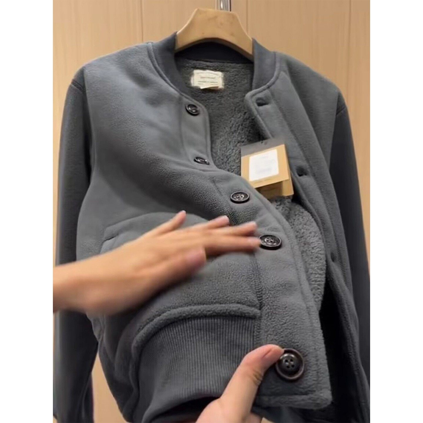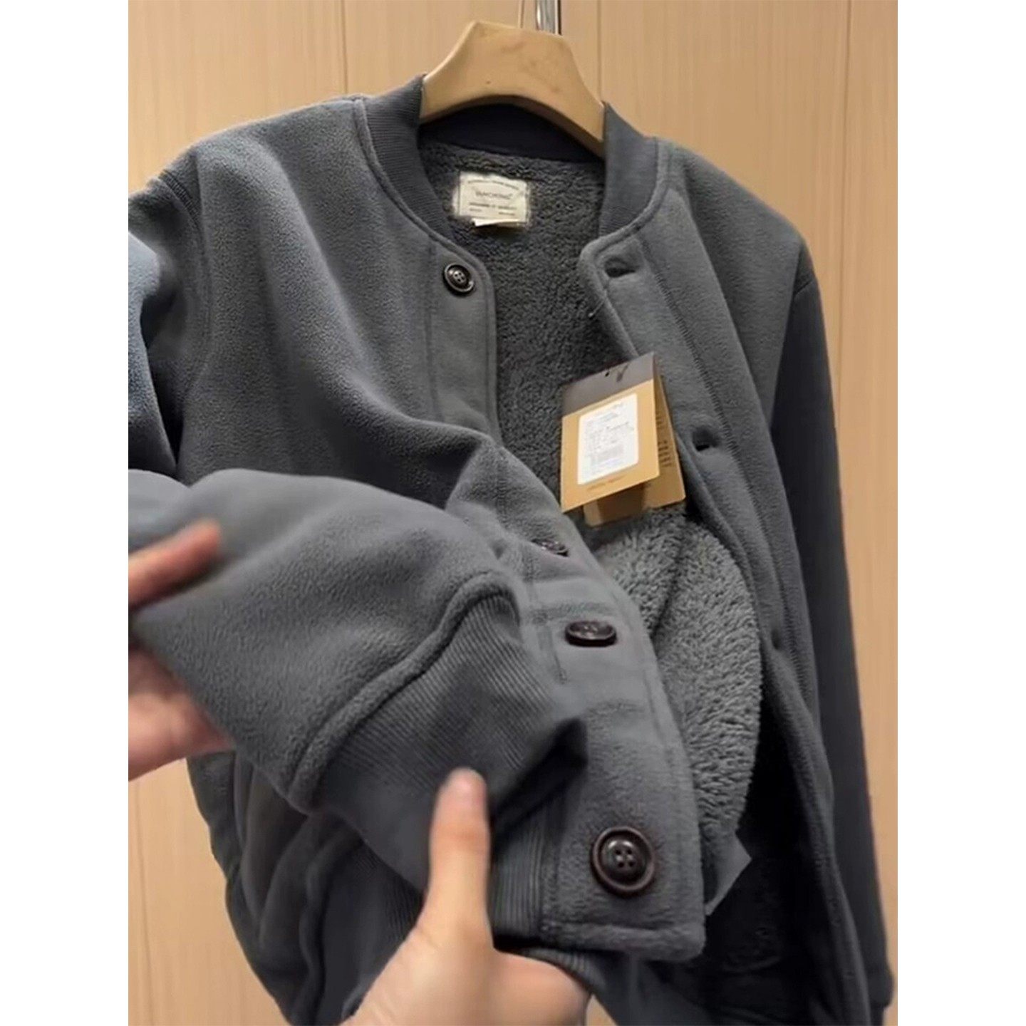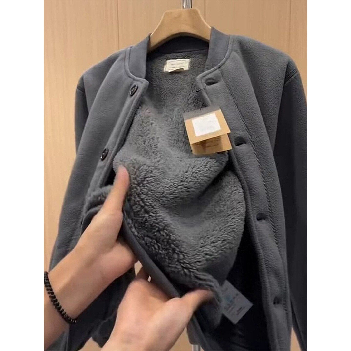淘保暖棒球服户外防寒羊羔绒内胆加摇粒绒立领外套加绒加厚夹克棉衣