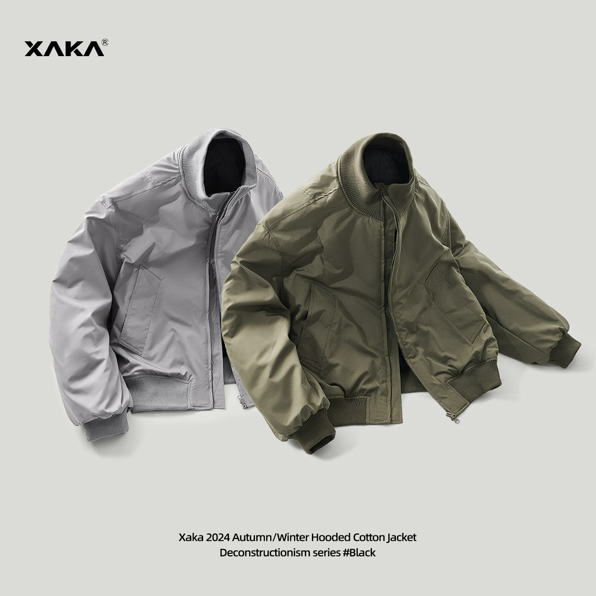 XAKA2025秋季新款男士美式立领短款外套,融合经典Bomber棒球服与飞行员夹克设计精髓,打造都市潮流新风尚。采用高品质防风面料,轻盈挺括,兼具保暖性与舒适度。立体剪裁凸显肩臂线条,短款版型优化身材比例,轻松穿出利落型格。胸前品牌徽章点缀,袖侧条纹装饰,细节彰显美式复古韵味。多口袋实用设计,兼顾美观与功能性。可搭配卫衣、T恤或衬衫,轻松驾驭街头、通勤等多种场景。XAKA以匠心工艺与潮流洞察,为现代男性呈现兼具风格与实穿的秋季必备单品。