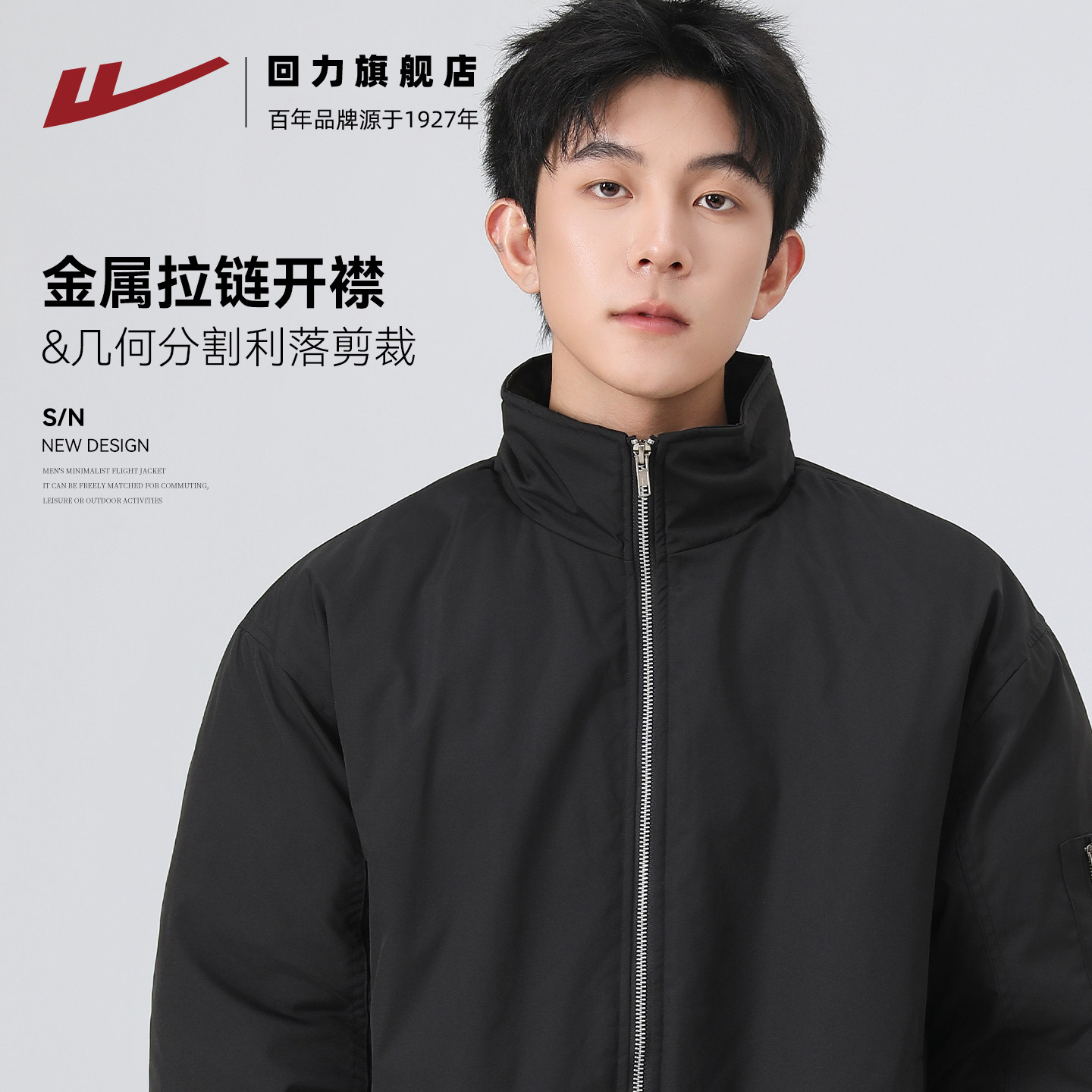 天猫回力棉服外套冬装男款2025新棉袄美式棒球服飞行夹克加厚男士外套