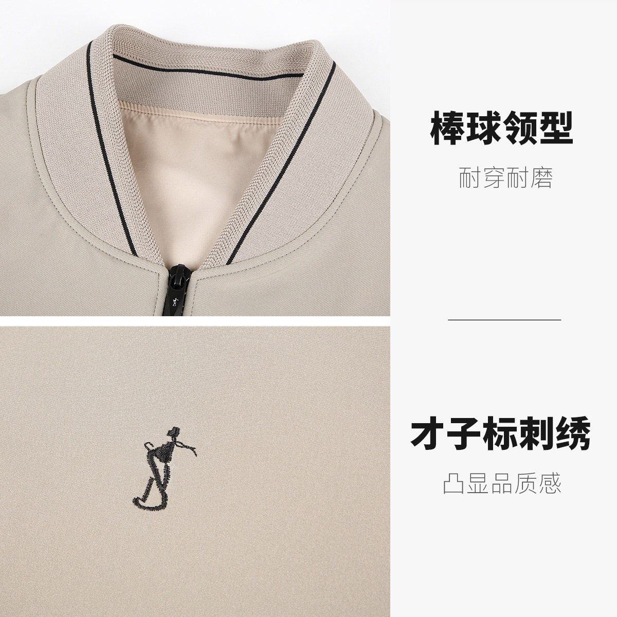 天猫才子男装撞色棒球领夹克男士2025春秋季新款商务休闲刺绣黑色外套