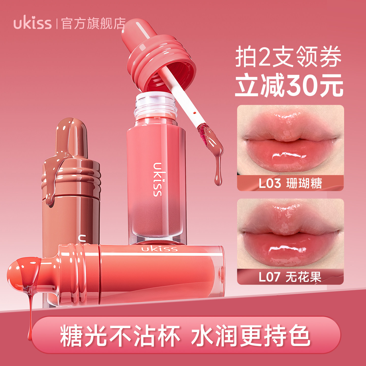 天猫ukiss小奶瓶唇釉唇彩镜面水光不易沾杯显白裸色系水唇露唇蜜口红