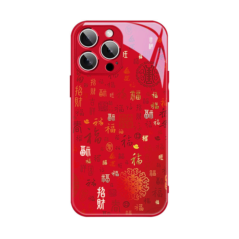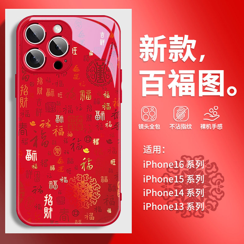 天猫百福送财苹果16手机壳17pro新款iPhone15ProMax创意14马年13高级感xr国潮12mini新年xs招财11pm男女8p玻璃air