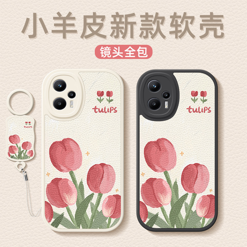 天猫红色花朵适用红米note12pro手机壳小米note11/note10新款11tpro+硅胶redminote7/8/9/10a小羊皮se全包防摔5g