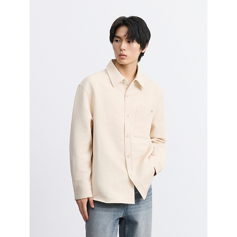 天猫GXG男装 微肌理长袖衬衫暗纹精致休闲衬衣男薄外套 2025秋季新品